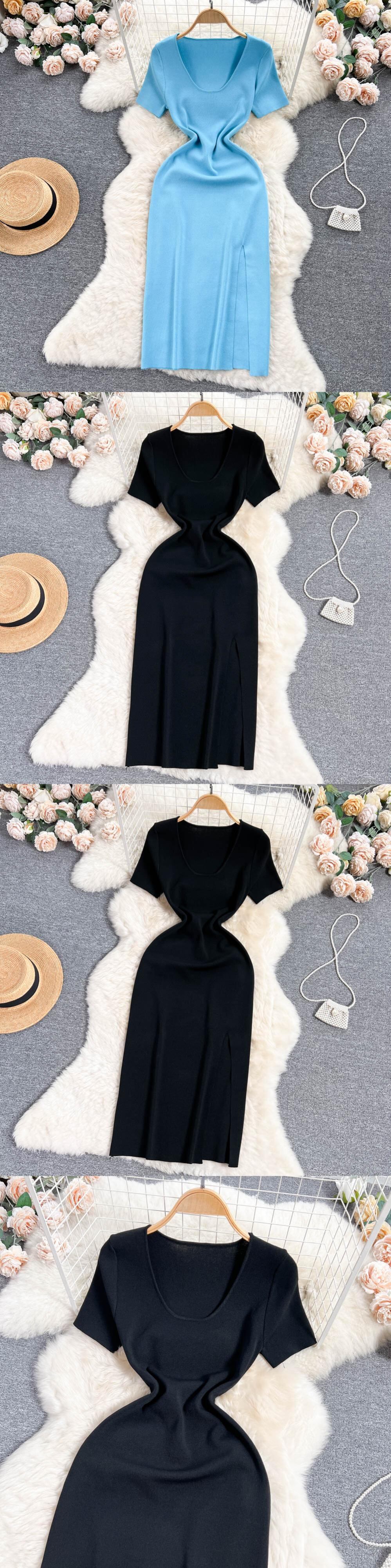 シック弾性スリムスプリットラップボディコンドレスセクシー半袖ラペルニット Vestido ペンシルドレス ショート ハーフスリーブ エラスティック 伸縮