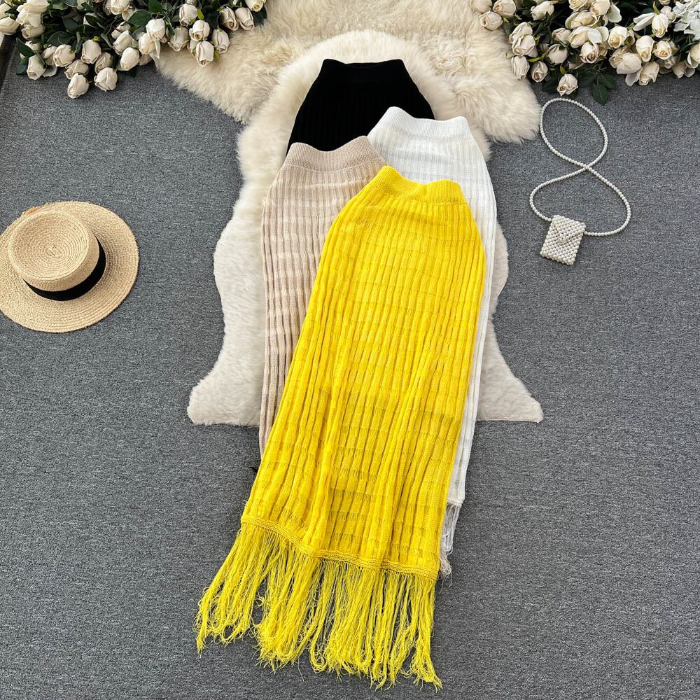 気質レディロングスカート夏ハイウエスト薄型中空デザインスーパー妖精 Tel スカートペンシルスカート ハイウェスト サマー 夏物