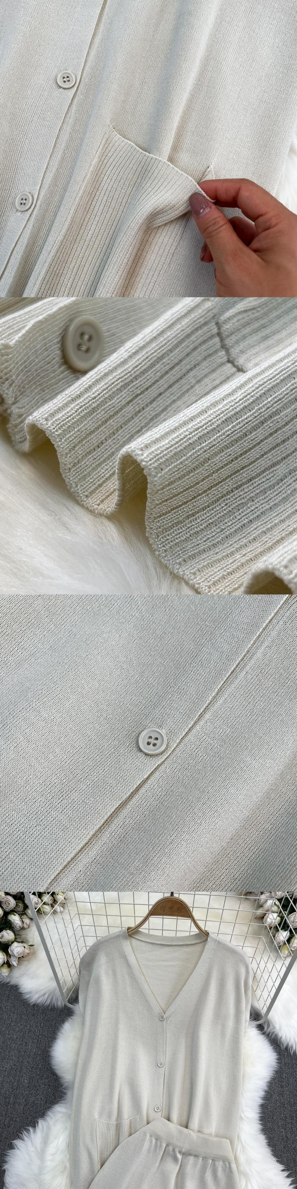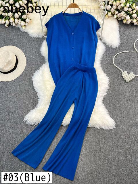 基本的 V ネック春夏 Tシャツセットニットルーズツーピースノースリーブトラックスーツレディースパンツスーツ スプリング 春物 サマー 夏物 Vネック