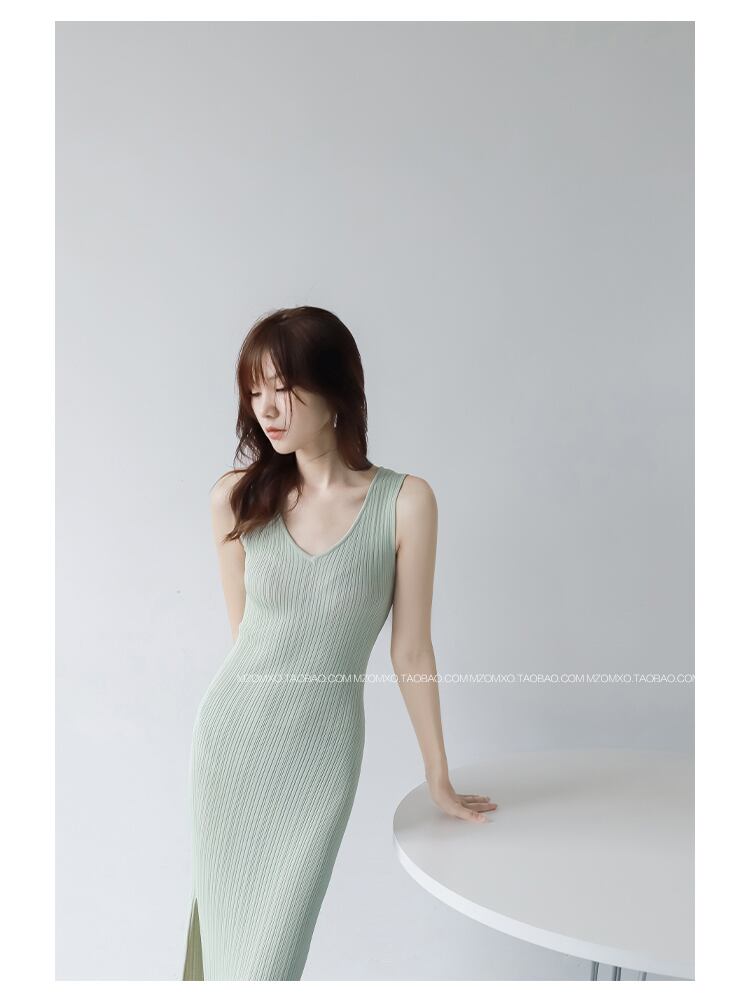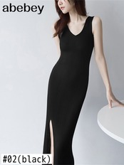 V ネック夏ニットセクシーストラップドレスタンク Elatic ウエストボディコンサンドレスビーチスプリット背中開いたマキシロングドレス サマー 夏物