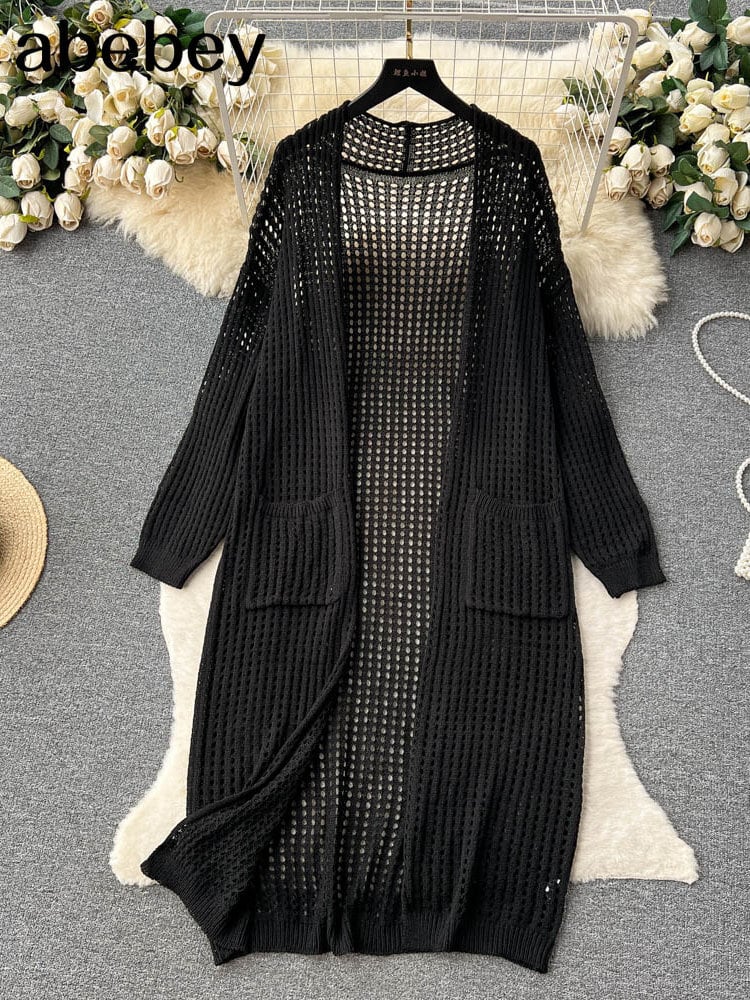 夏中空アウト ビーチ ロング カーディガン花柄ニット ストリート ルーズ カーディガン無地ボヘミアン オーバー コート サマー 夏物 ソリッドカラー