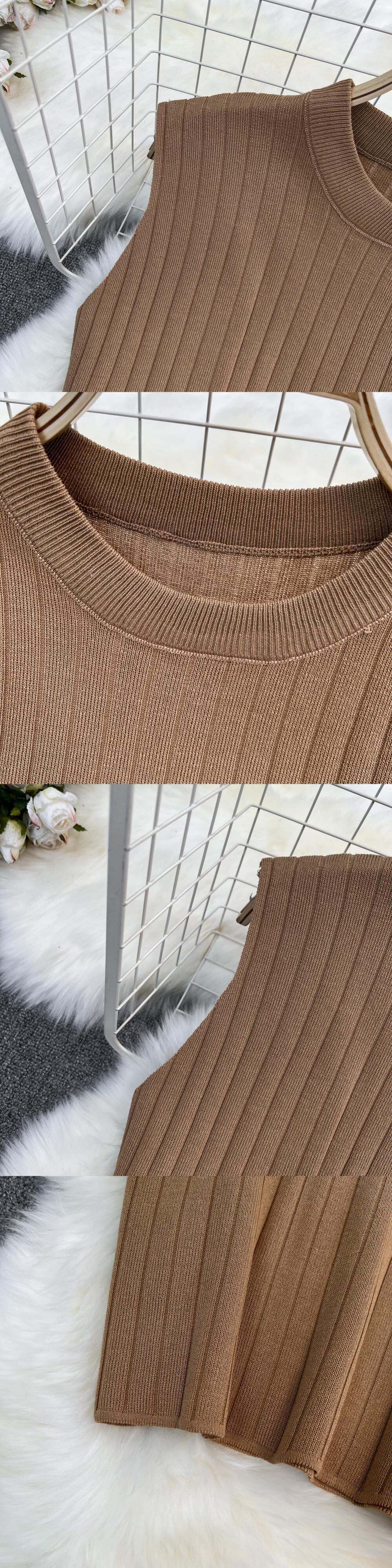 ソリッドベーシック O ネック春夏 Tシャツセットニットルーズツーピースノースリーブトラックスーツレディースパンツスーツ スプリング 春物 サマー 夏物 Oネック ソリッドカラー