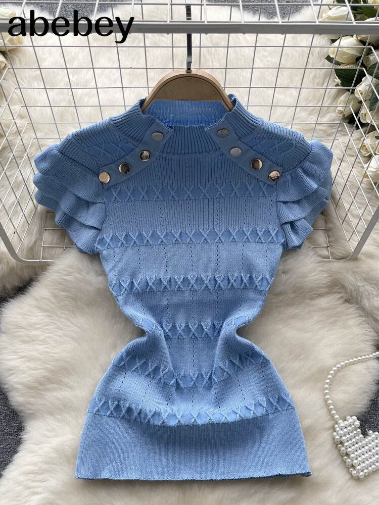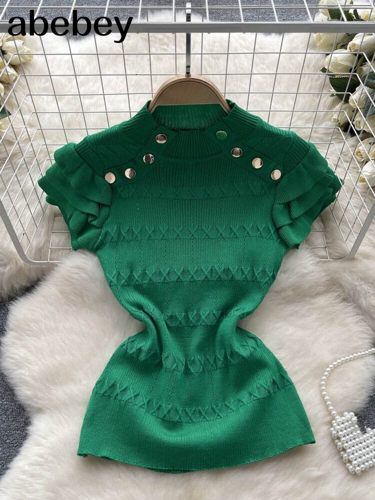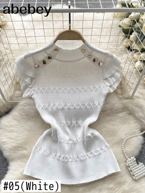 通勤レジャーポニー刺繍セーター半袖 Tシャツトップ春シャツツイストニットトップス ショート レッド ハーフスリーブ スプリング 春物