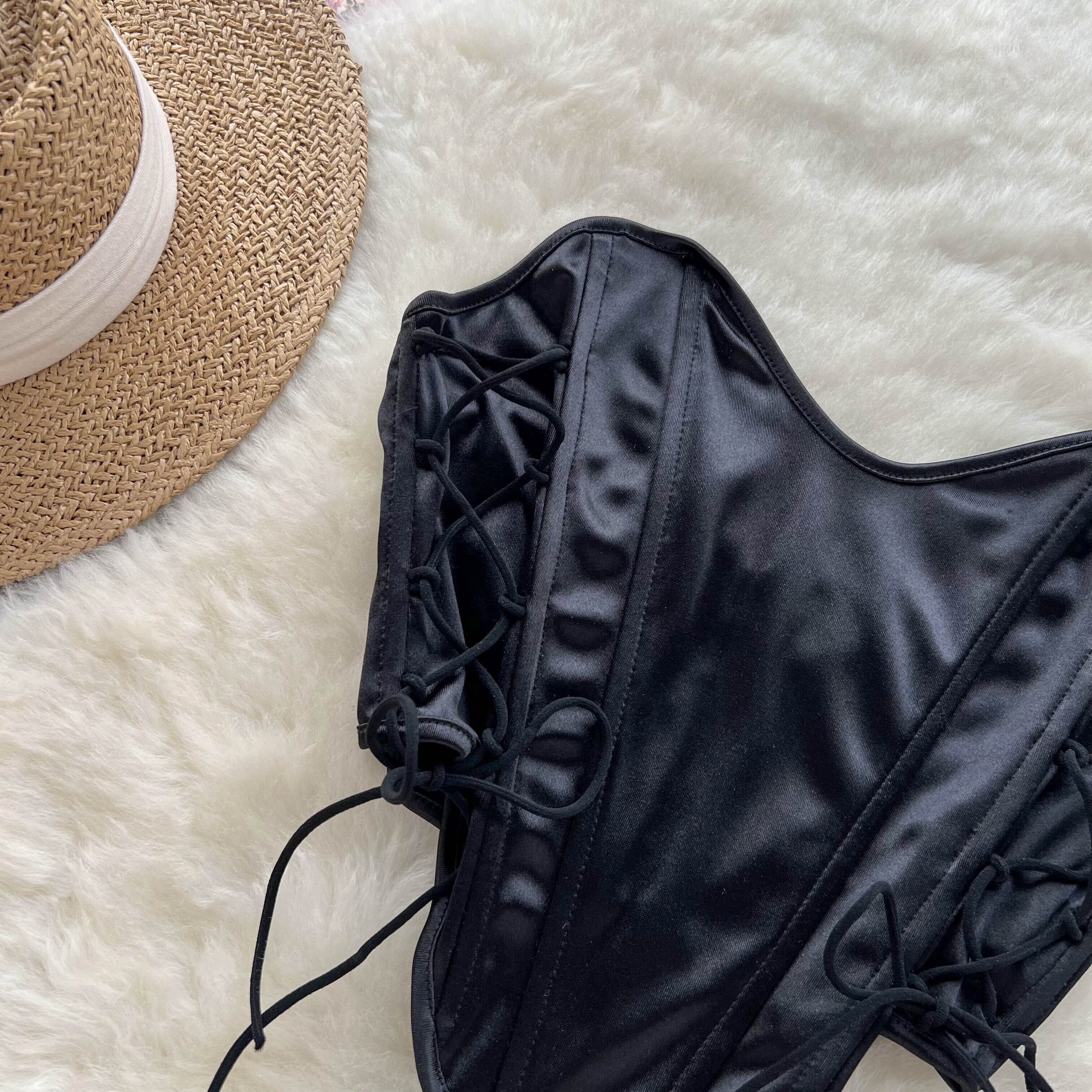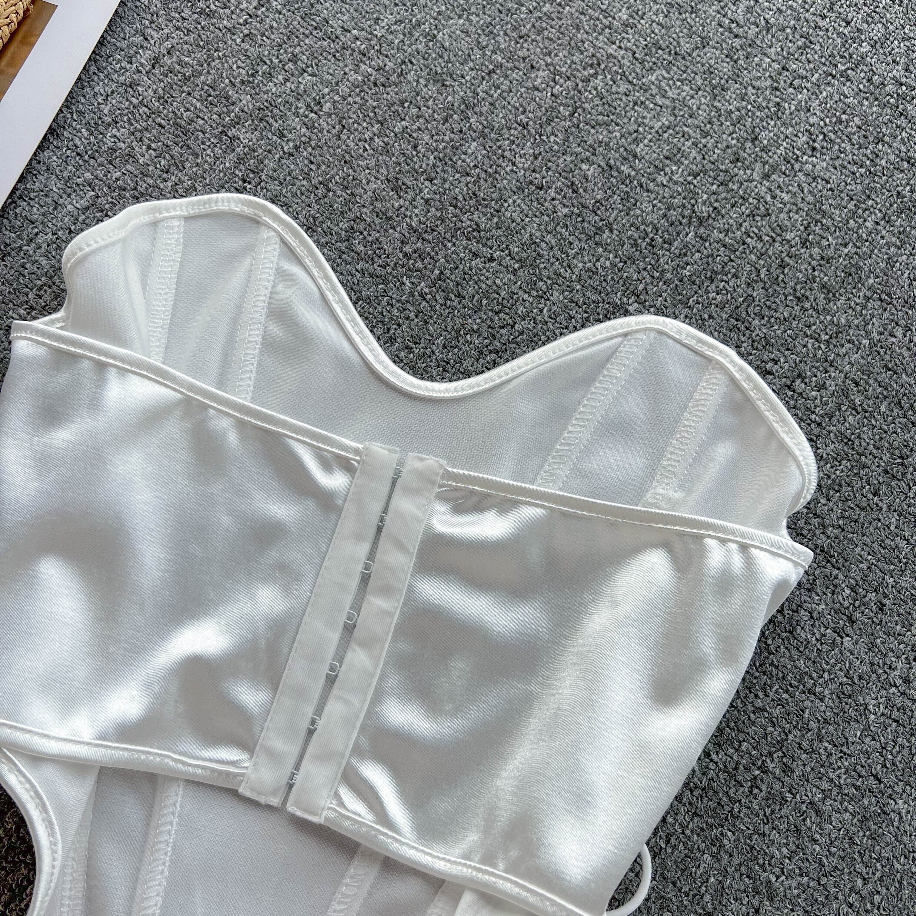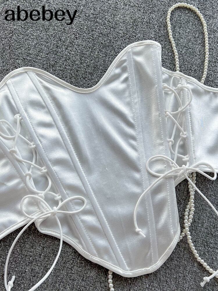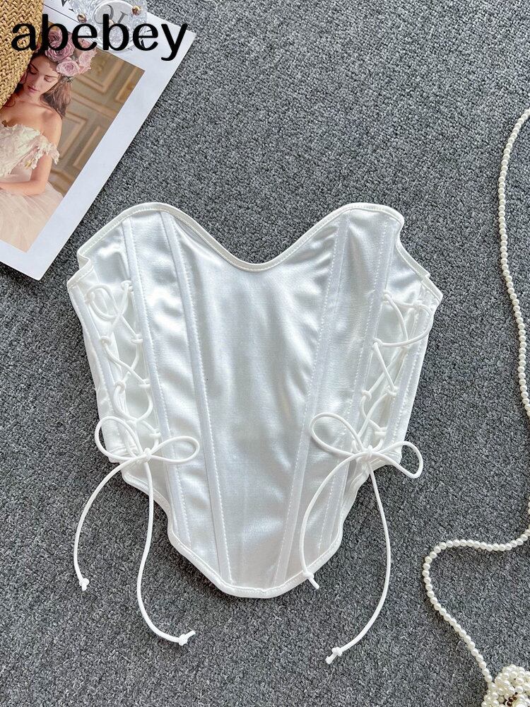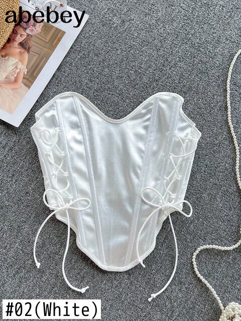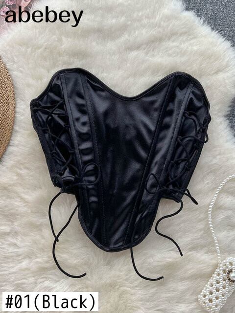 背中開いたストラップレスタンクトップソリッドレースアップクロスフレンチサテンコート夏フレンチセクシークラブクロップトップ サマー 夏物 ソリッドカラー
