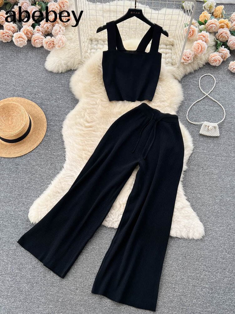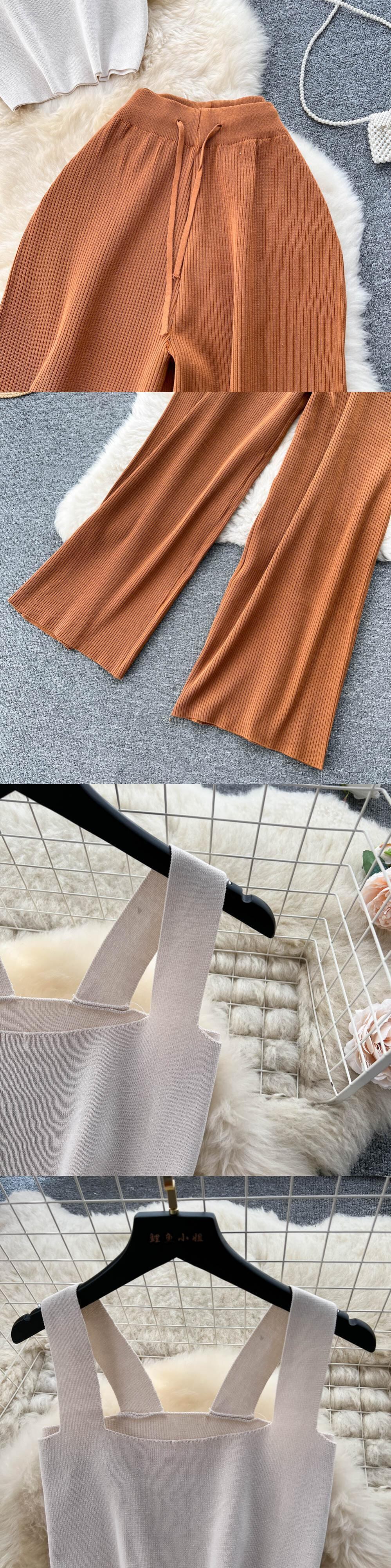 ベーシック Vネック サマー レディース キャミソール ノースリーブ セット ニット ルーズ ツーピース トラックスーツ レディース パンツスーツ 夏物