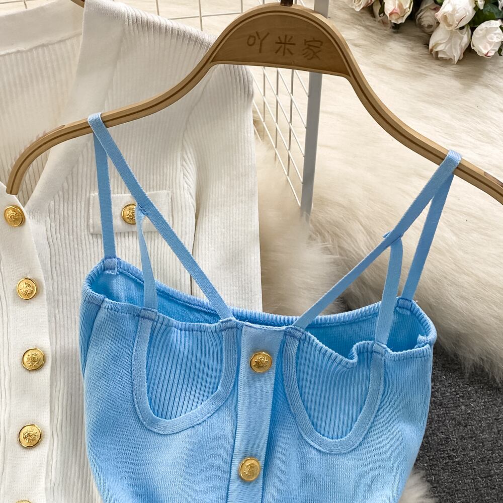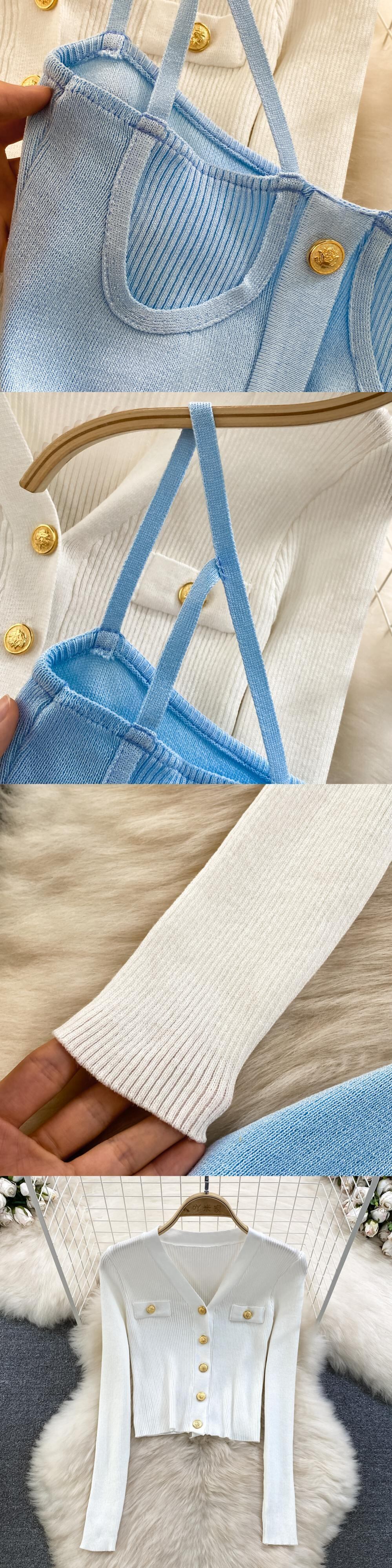 ニットセットルーズロングスリーブセーターカーディガン + ソリッド弾性ドレスフレンチスタイルツーピースセット衣装 長袖 エラスティック 伸縮 ソリッドカラー