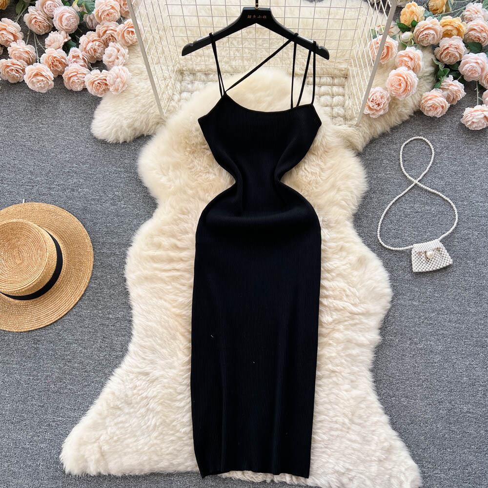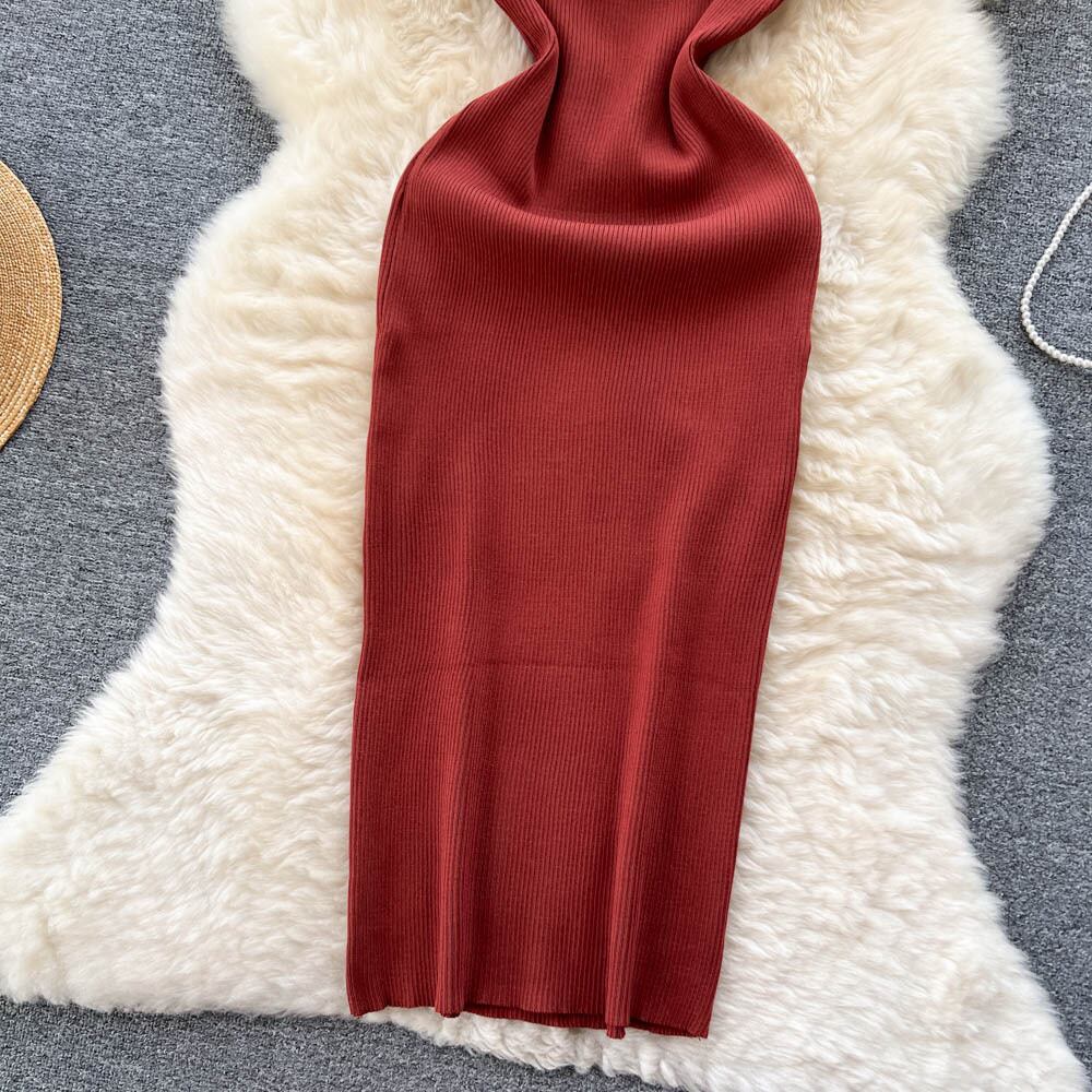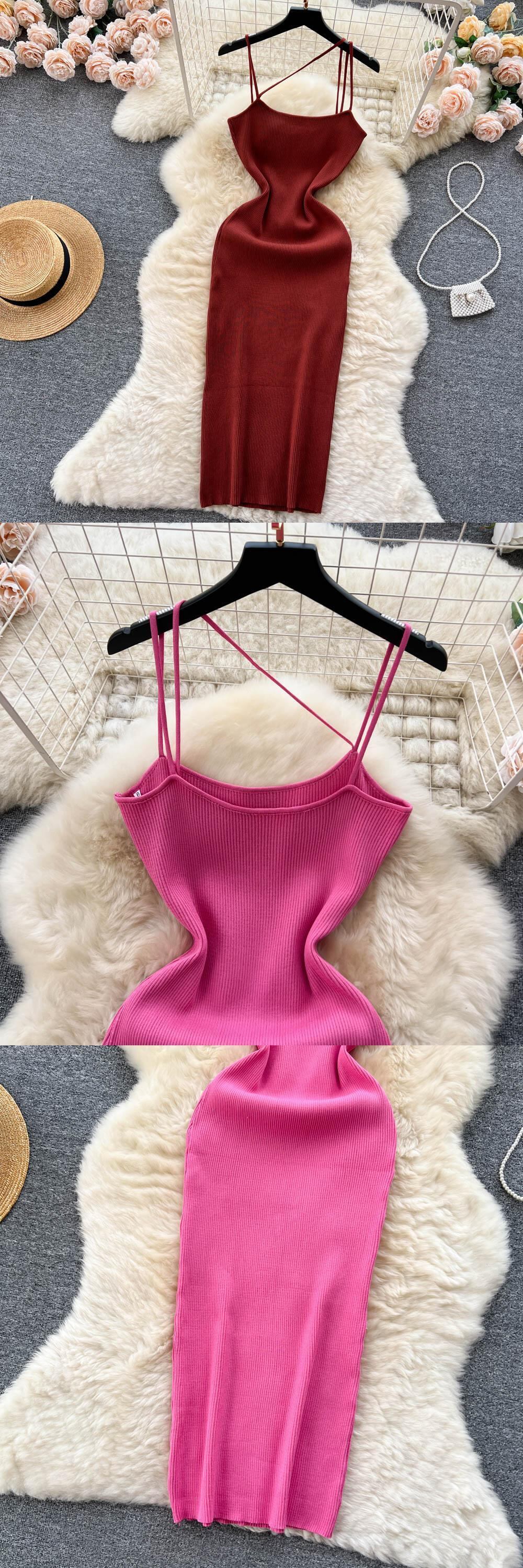 夏ニットセクシーストラップドレスタンクエラティックウエストボディコンサンドレスビーチバックレスロングドレス サマー 夏物