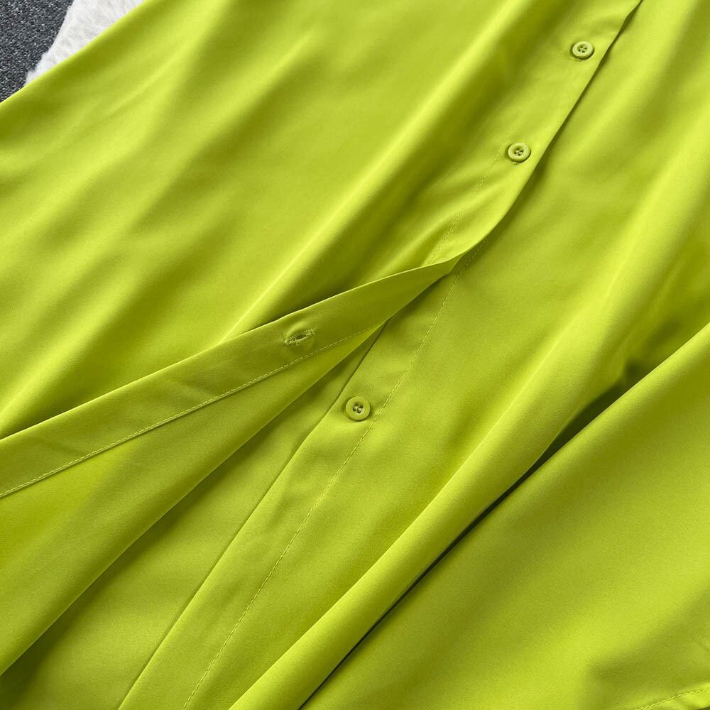 ロンググリーンシャツドレス長袖春夏特大ミディローブ スプリング 春物 サマー 夏物