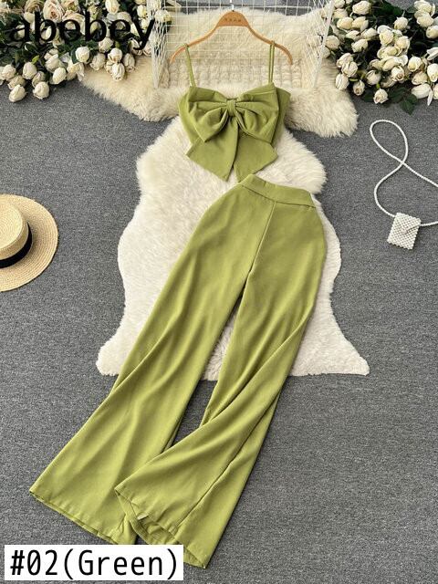 夏 OL ビーチ 2 個セットストラップセクシーキャミソール + ワイドレッグロングパンツ蝶プリント 2 ピーススーツ サマー 夏物 ワイドパンツ ソリッドカラー