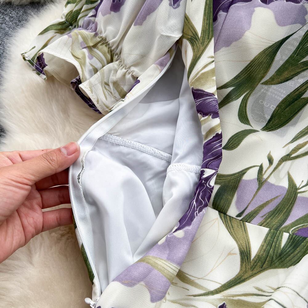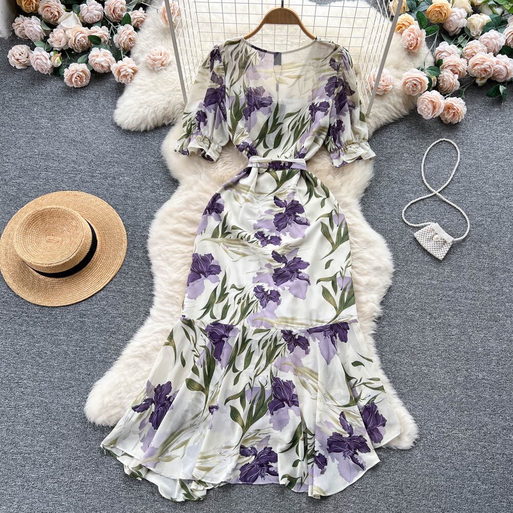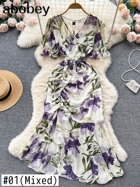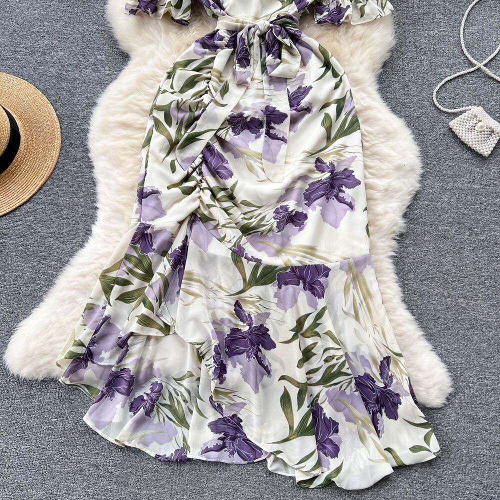 春秋スリムプリントセクシードレス V ネック気質ロング長袖イブニングドレスドレストップ スプリング 春物 オータム 秋物 Vネック