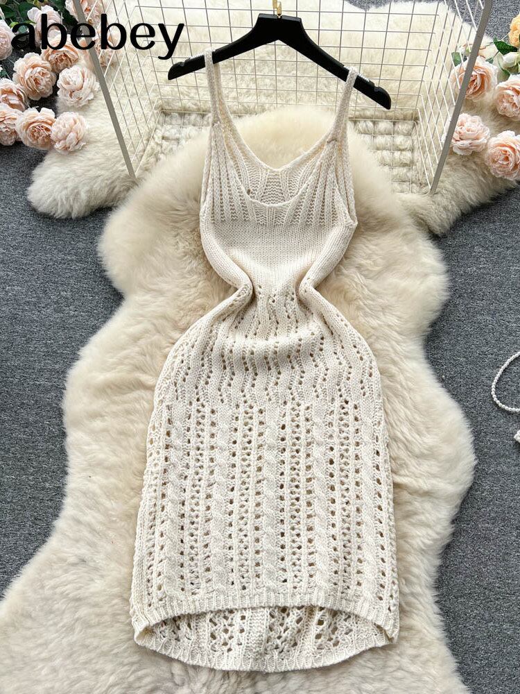 スパゲッティストラップ中空アウトビーチロングドレス夏弾性バックレスルーズサンドレス休暇セクシーミディドレス エラスティック 伸縮 サマー 夏物
