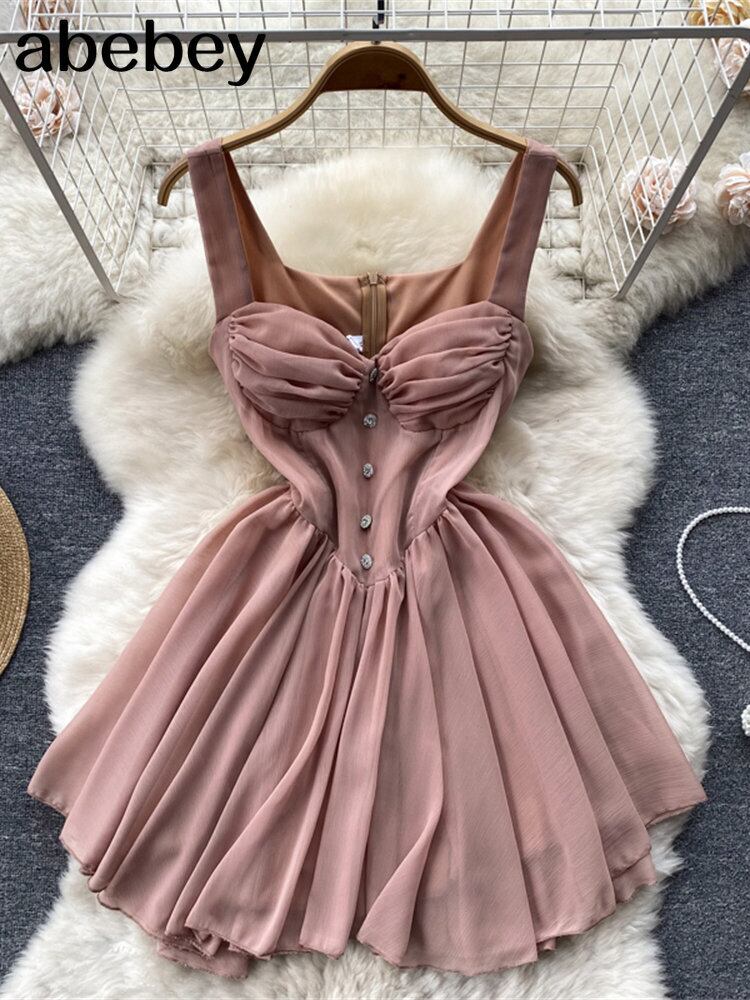 ストラップレスセクシーパーティードレス夏ボヘミアンシフォンAラインタンクドレスショートビーチドレス サマー 夏物