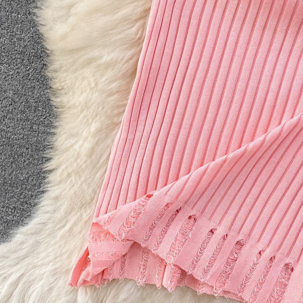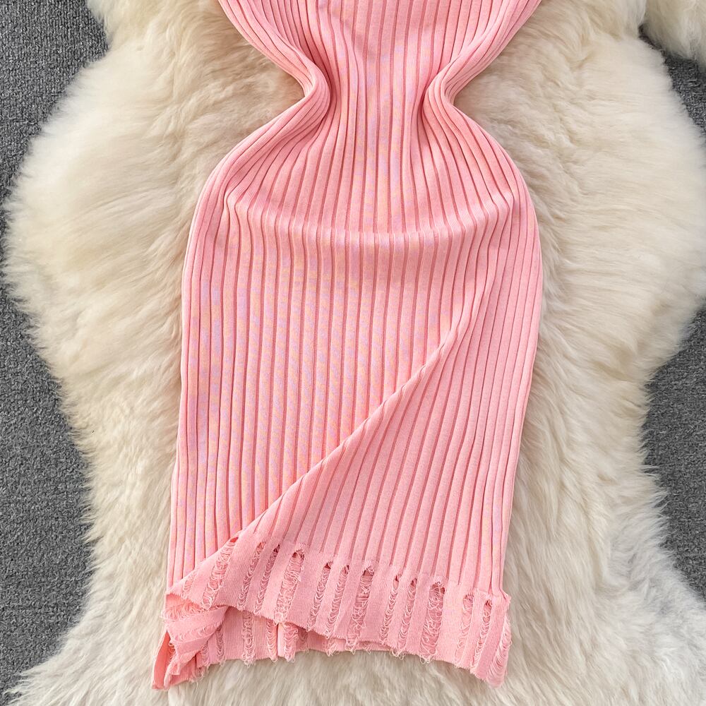ピンク手紙ニットドレスサマーストラップノースリーブボディコンドレスヨーロッパスタイルオフィスドレス 夏物 会社 学校 通勤や通学にも