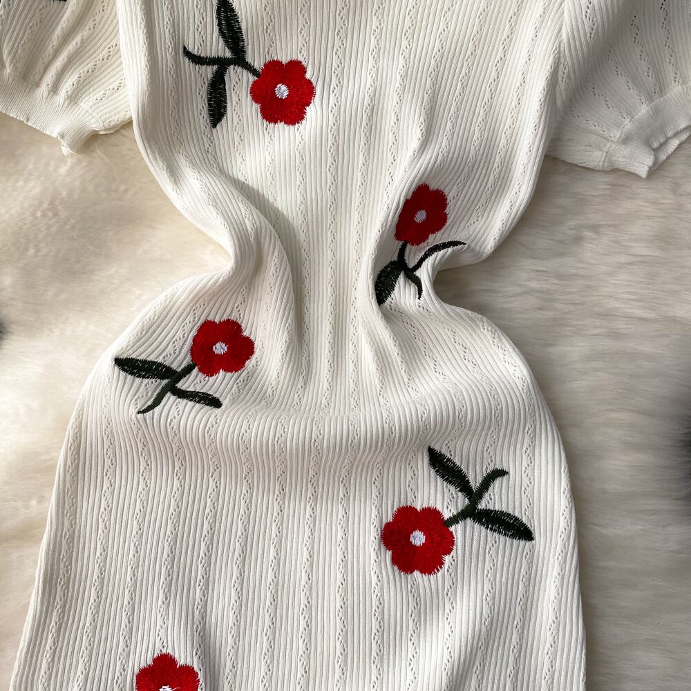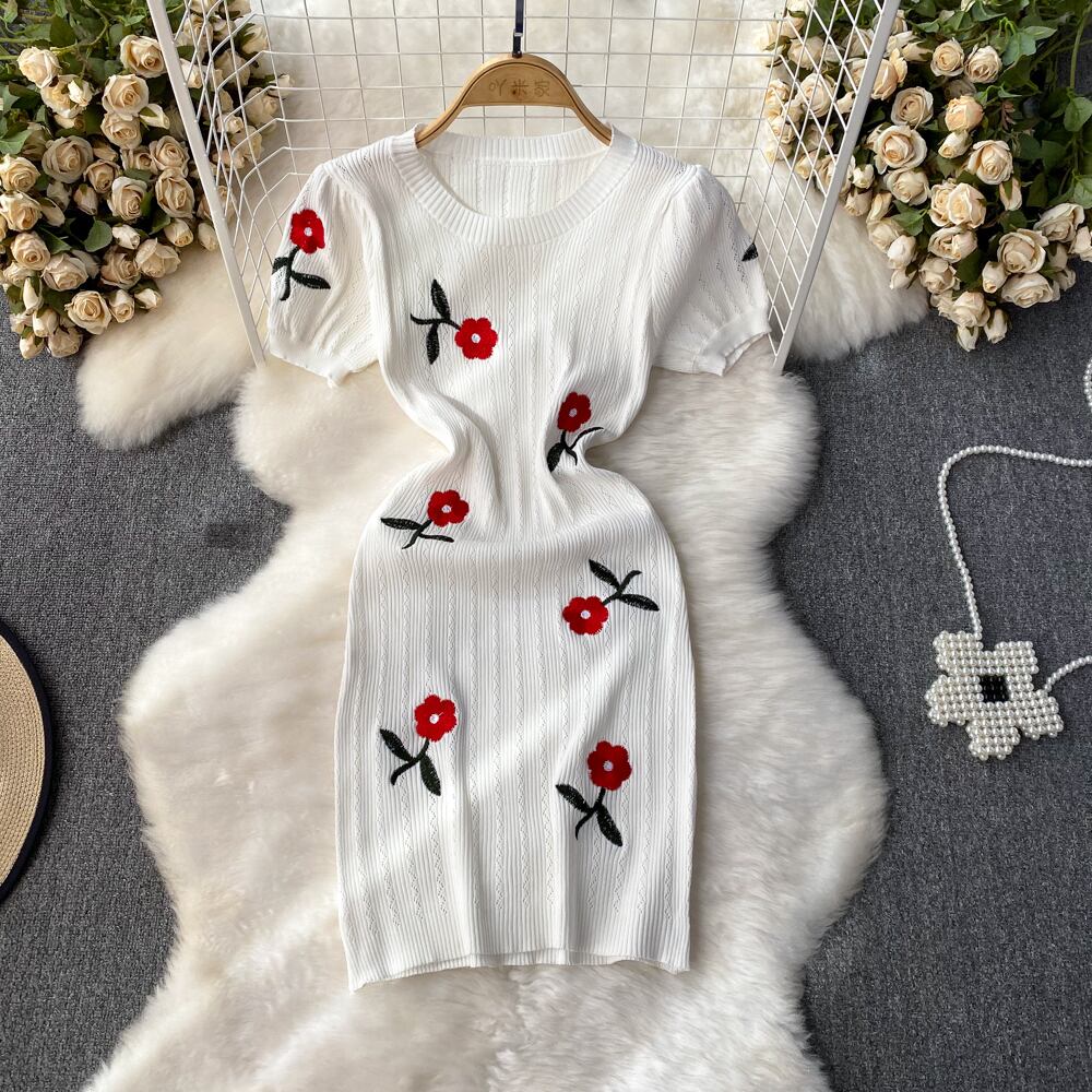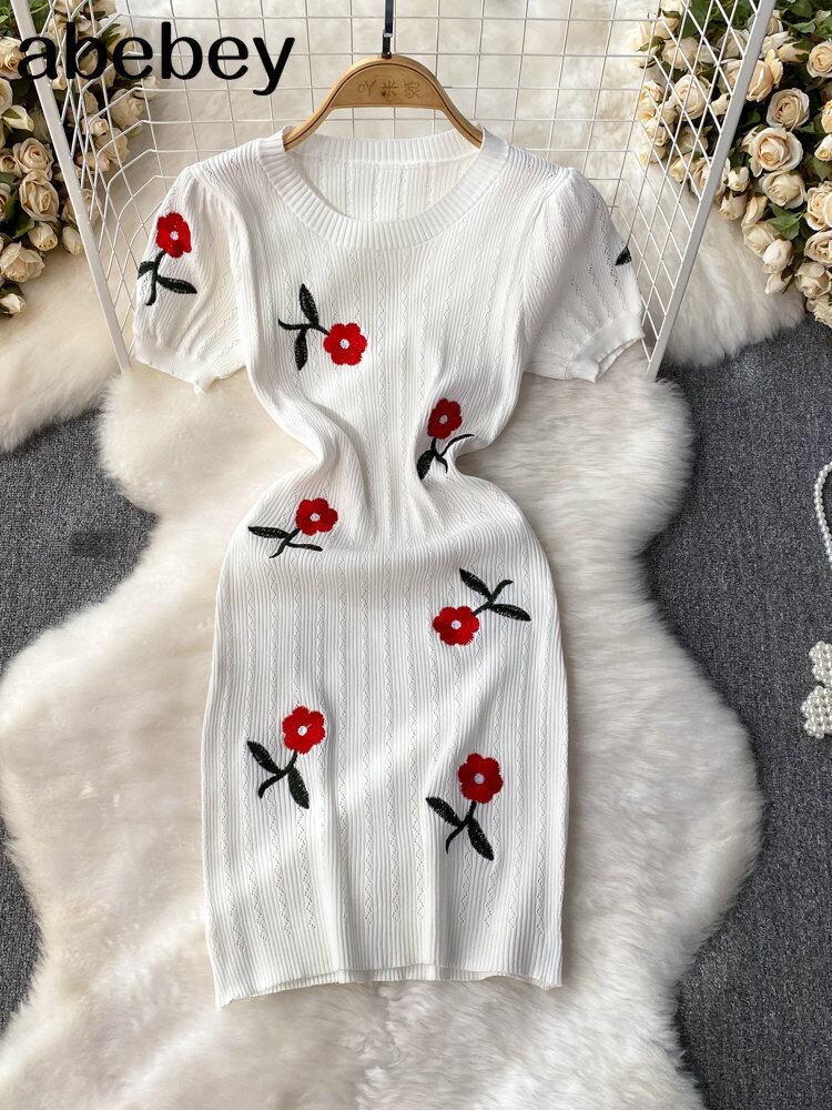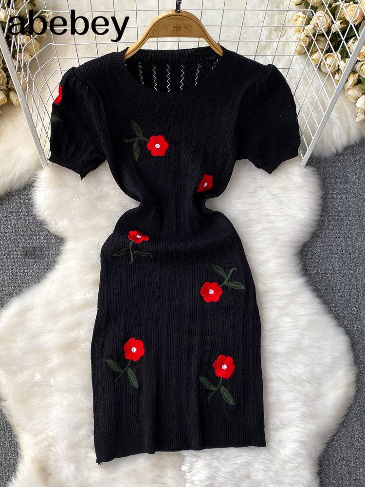 かぎ針編みドレス ニットカットアウトドレス Jurk Dames ビーチドレス半袖 Vestidos ミディロングドレス ショート ハーフスリーブ