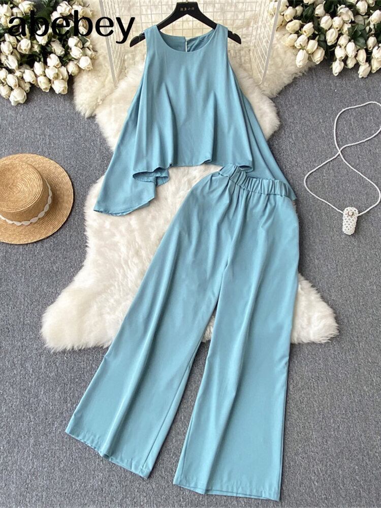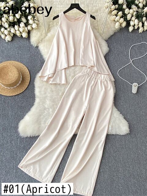 シフォン夏ツーピーススーツオフショルダーセクシートップ + ワイドレッグロングパンツルーズ OL セット サマー 夏物 ワイドパンツ