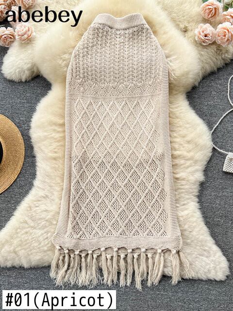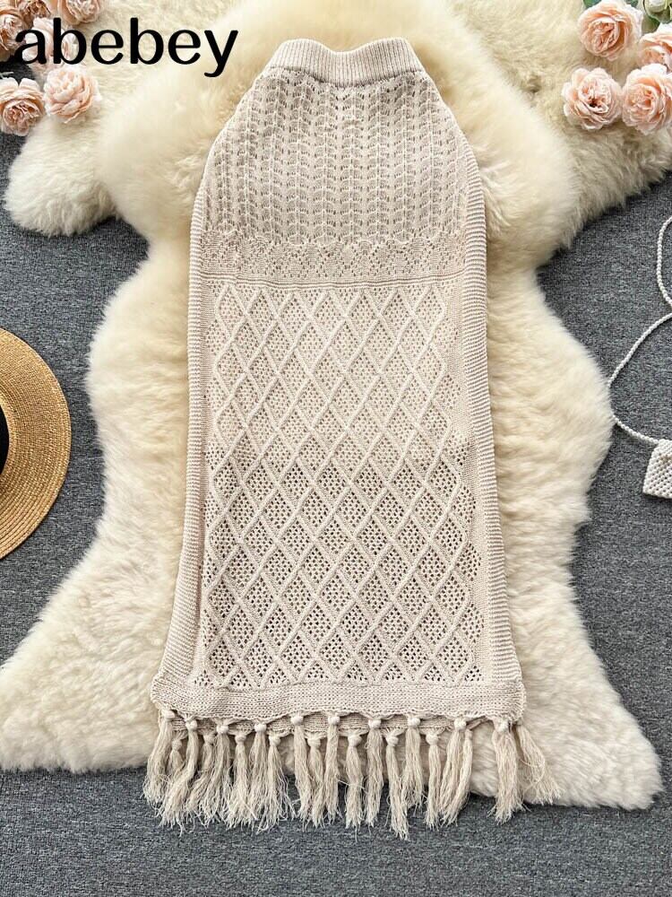 弾性ウエスト休暇スカート中空アウトボヘミアンスリムボディコンテルスカート夏ニットビーチロングスカート エラスティック 伸縮 サマー 夏物