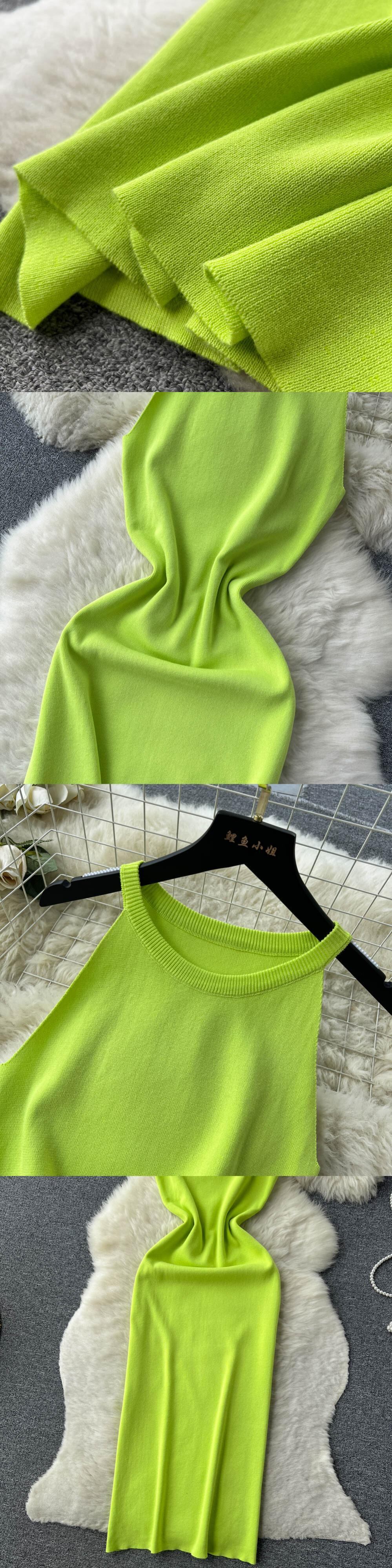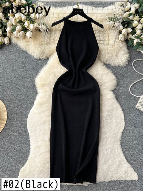 インソリッドニットドレスサマーホルターノースリーブボディコンドレスヨーロッパスタイルオフィスロングドレス 夏物 ソリッドカラー 会社 学校 通勤や通学にも