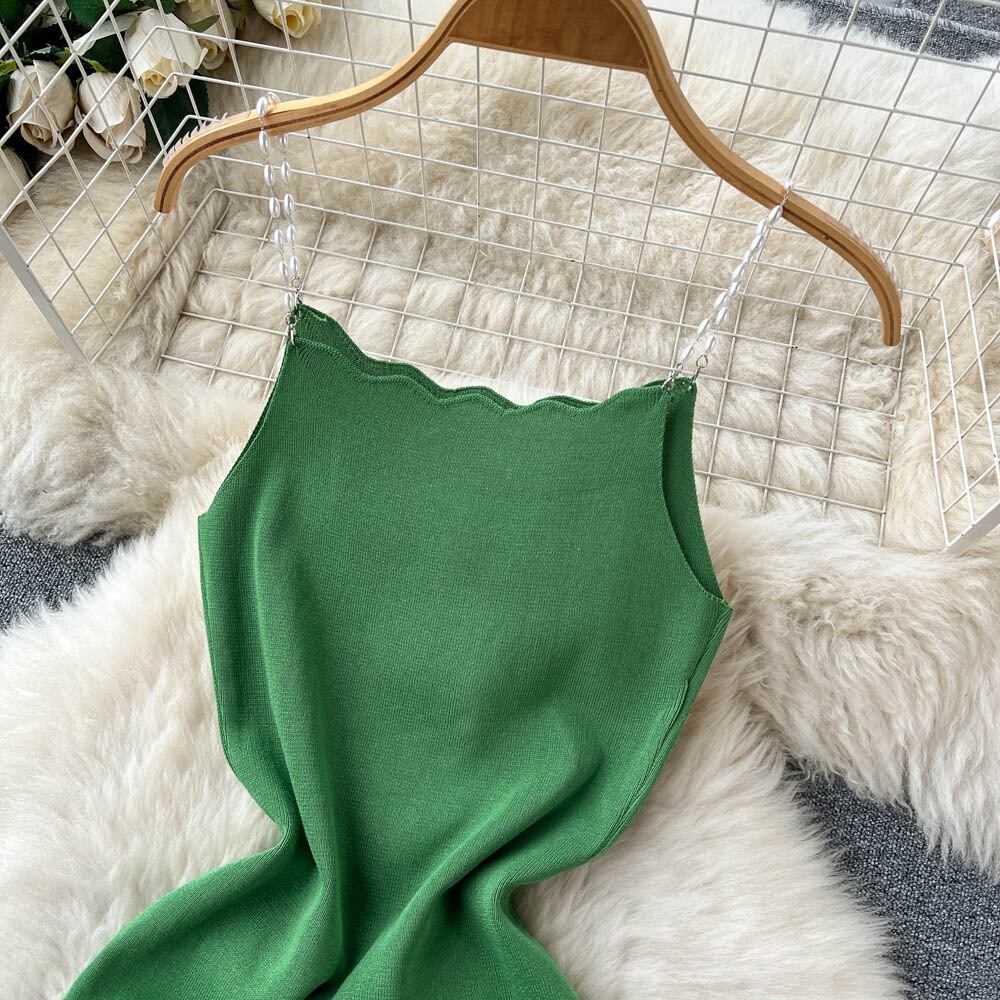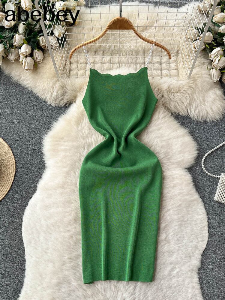 セクシーニットドレスストラップボディコン分割弾性フレンチスリムミニショートドレス エラスティック 伸縮 ソリッドカラー