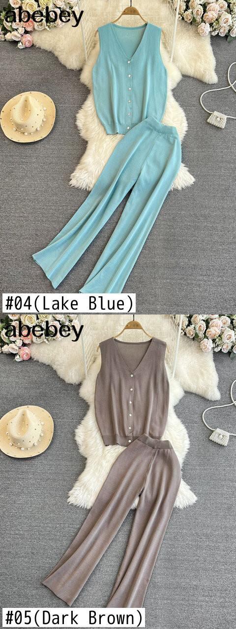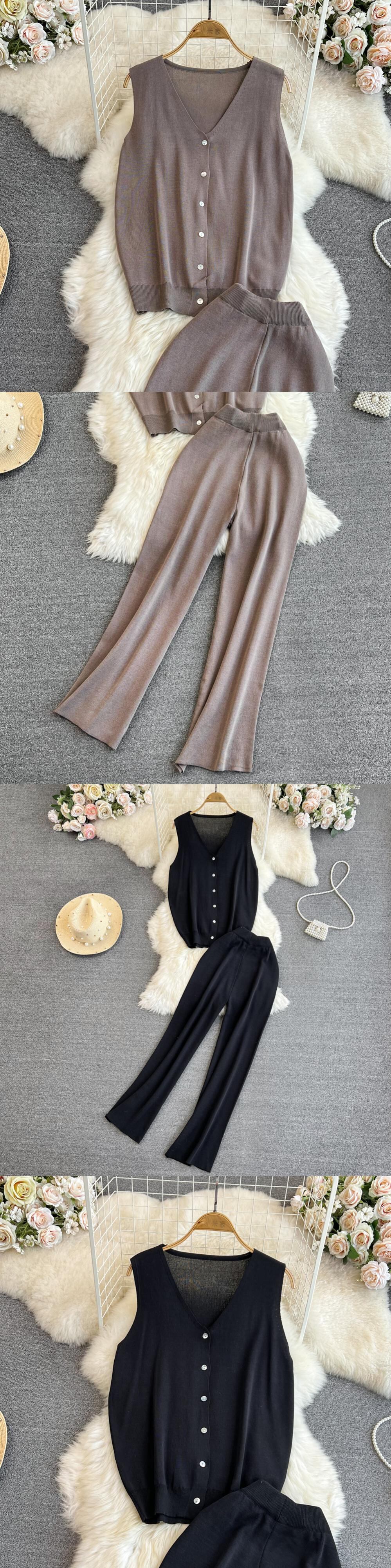 基本的 V ネック春夏 T シャツセットニットルーズツーピース半袖トラックスーツレディースパンツスーツ ショート ハーフスリーブ スプリング 春物 サマー 夏物 Vネック Tシャツ