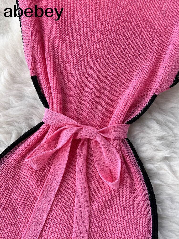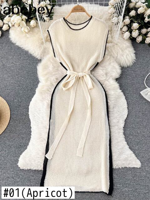 セクシーニットビーチドレス中空アウト O ネックノースリーブドレス夏シースルーホワイトホリデー Vestidos サマー 夏物 Oネック