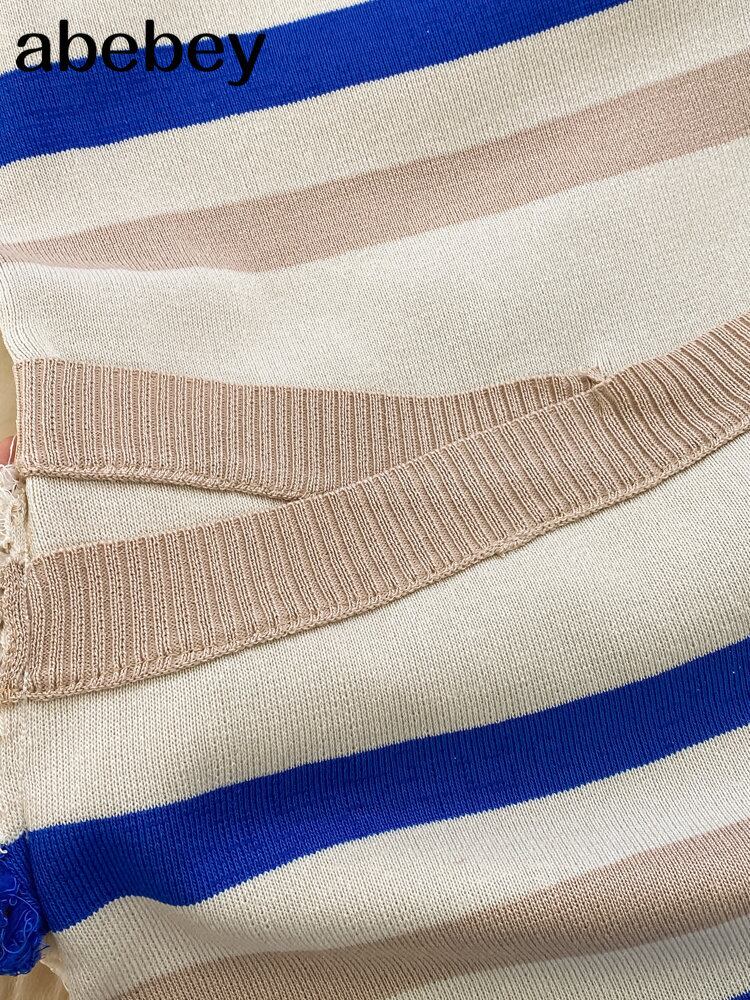 ストライプサマーニットセクシーストラップドレスタンク弾性ウエストボディコンサンドレスビーチスプリットバックレスロングドレス 夏物
