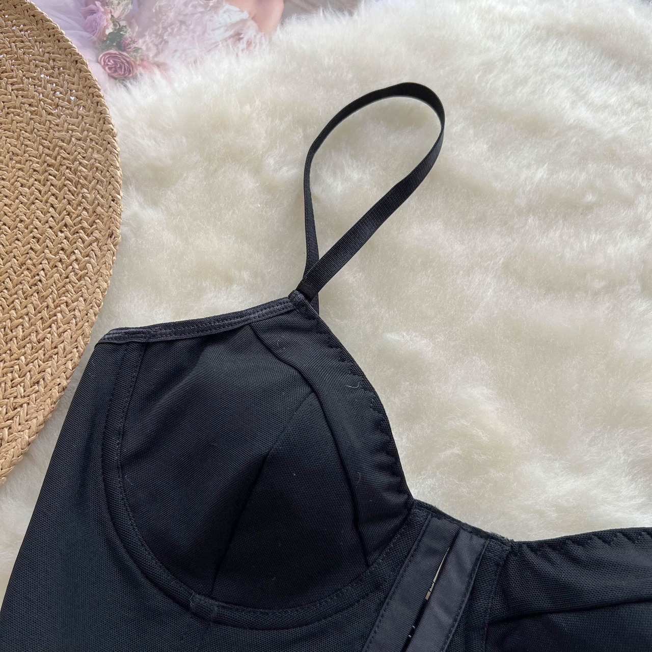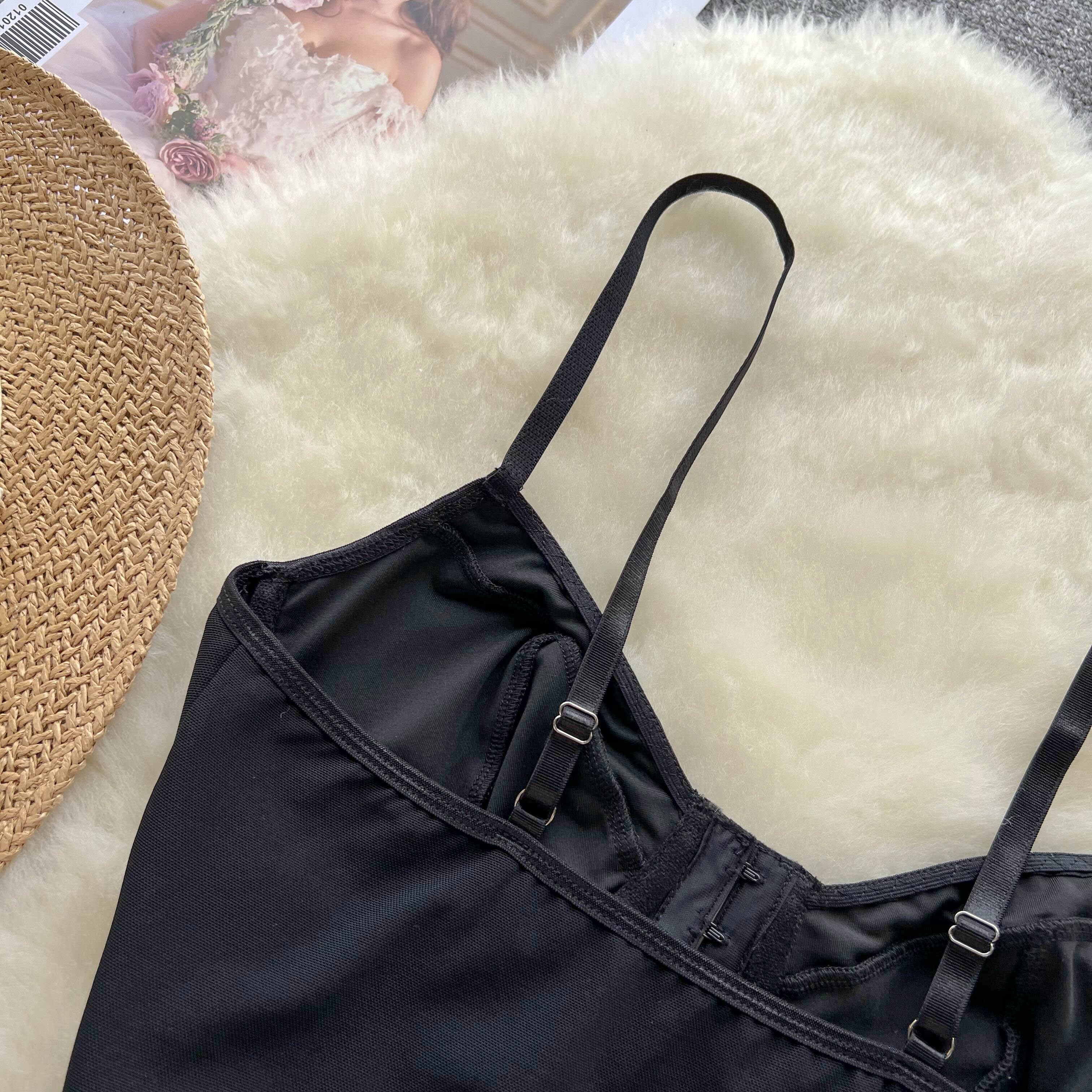 パッチワークメッシュキャミソール夏ストラップ弾性ウエストソリッド Y2K ストリートタンクトップ エラスティック 伸縮 サマー 夏物 ソリッドカラー