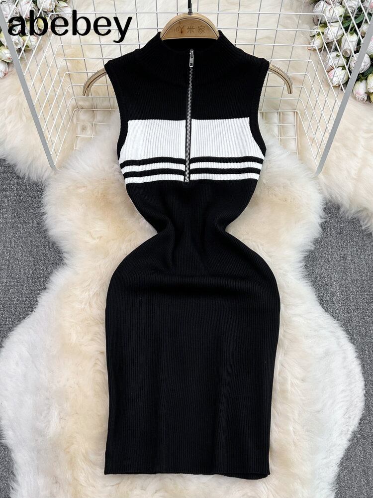 セクシーサマーニットストラップドレスタンク弾性ウエストボディコンサンドレスビーチストリップミディドレス 夏物