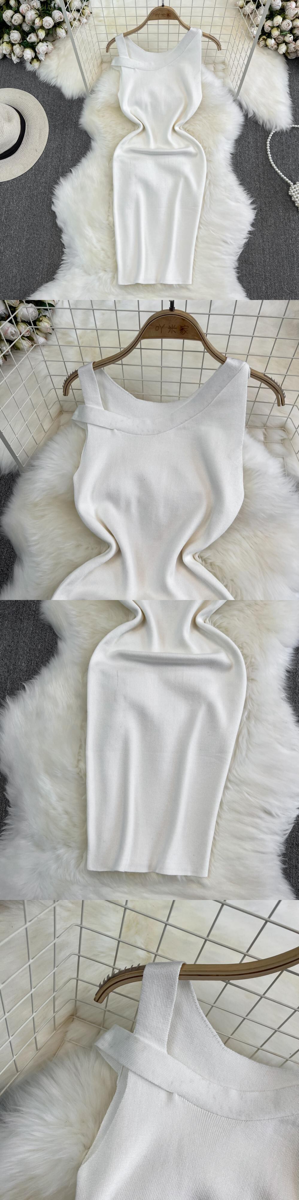 グリーンサマーニットセクシーストラップドレスタンク弾性ウエストボディコンサンドレスビーチスプリットバックレスロングドレス 夏物