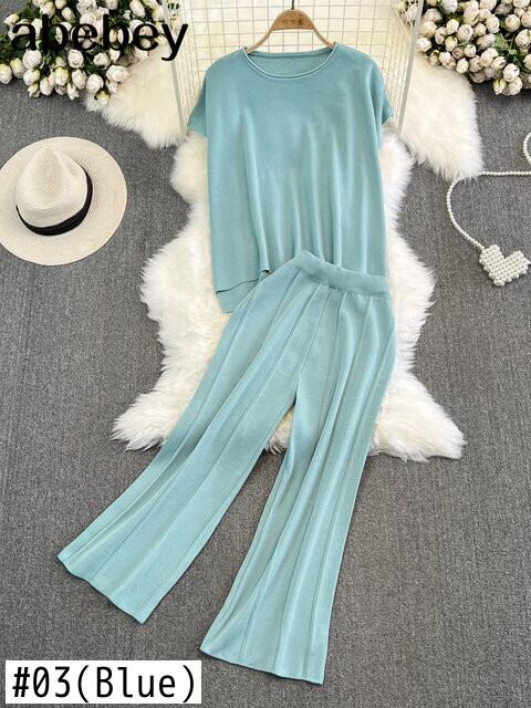 夏ツーピースルーズ Tシャツトラックスーツニット半袖セット通気性レディースパンツスーツ ショート ハーフスリーブ サマー 夏物