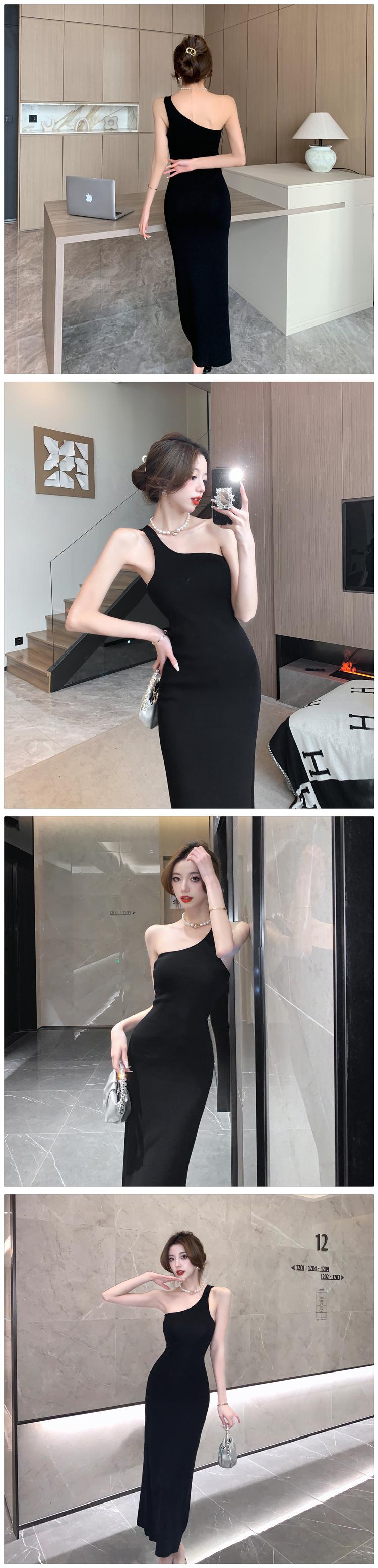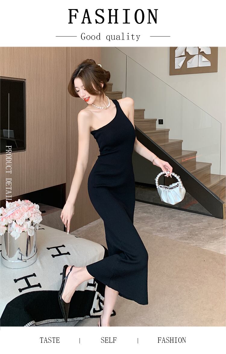 ワンショルダーサマーニットセクシーストラップドレスタンク弾性ウエストボディコンサンドレスビーチ背中開いたマキシロングドレス 夏物