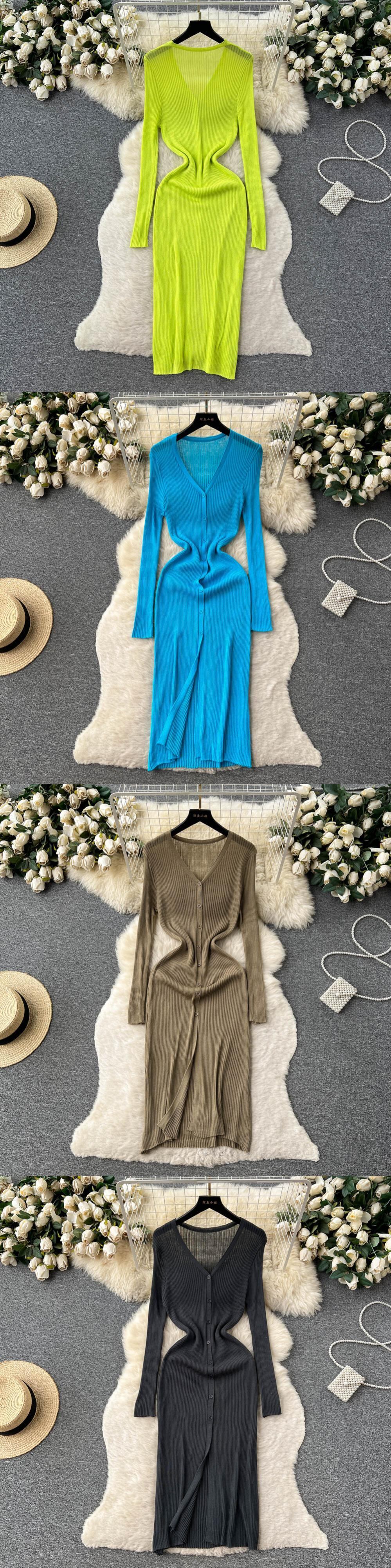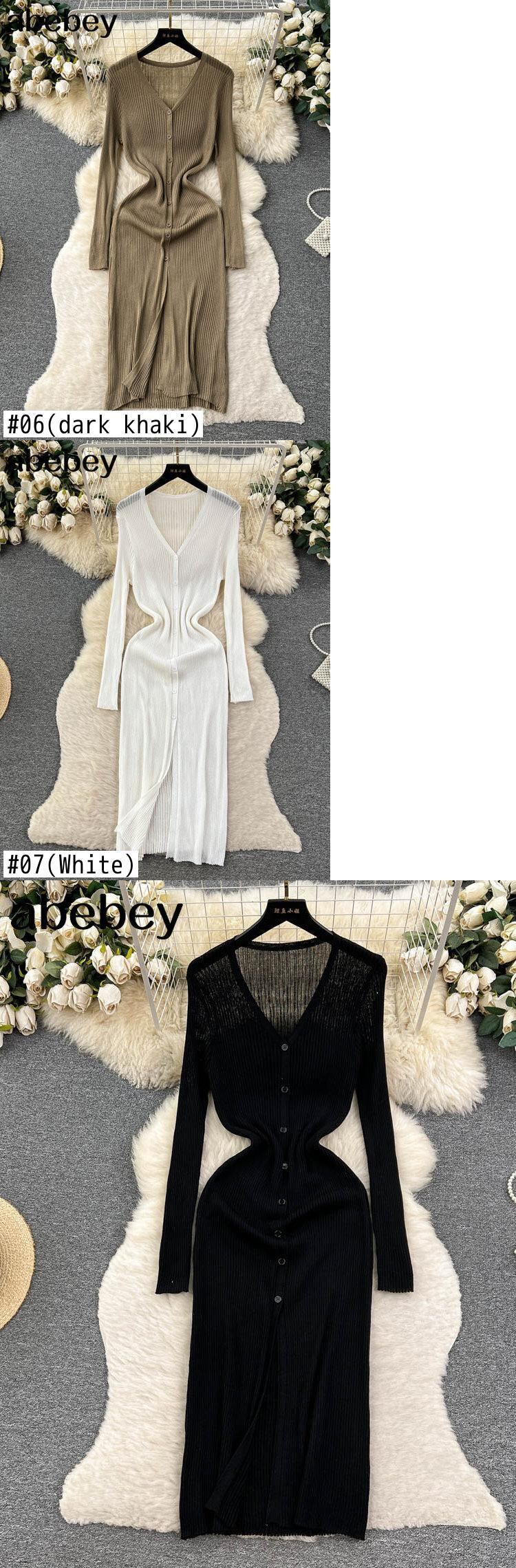 夏透明ニットビーチドレス長袖日焼け止めシャツドレス休暇弾性ウエストボディコンロングドレス エラスティック 伸縮 サマー 夏物