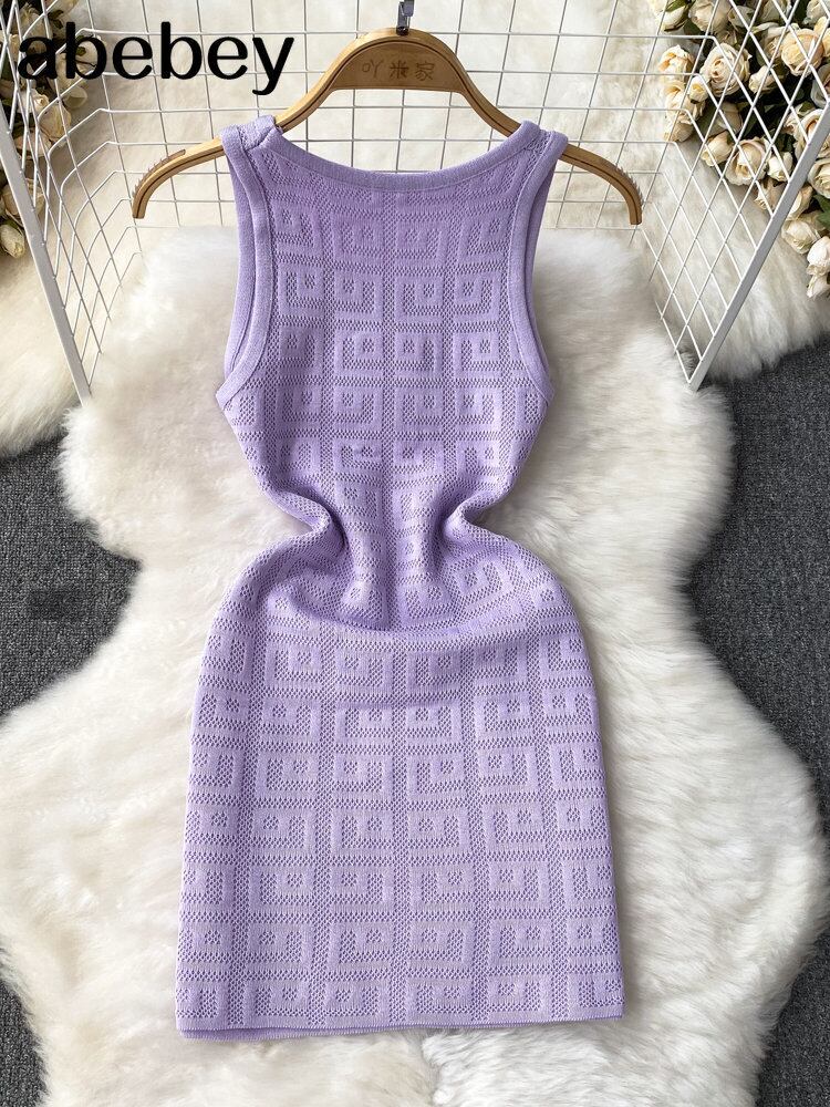 パープル/ブラックサマーニットセクシーストラップドレスタンク弾性ウエストボディコンサンドレスビーチ背中開いたミニショートドレス 夏物