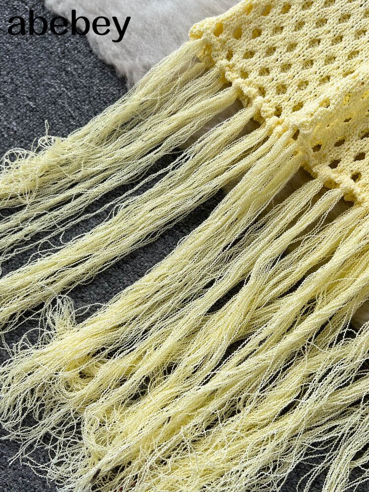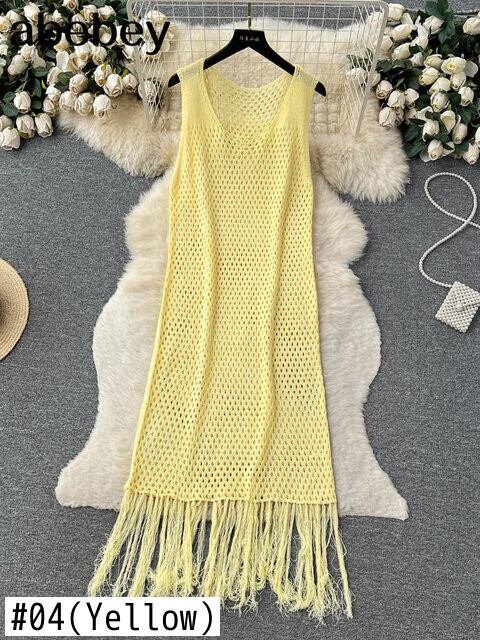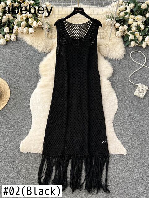 夏中空アウトニットビーチドレスノースリーブ休暇テルロングサンドレスルーズボヘミアンドレス サマー 夏物