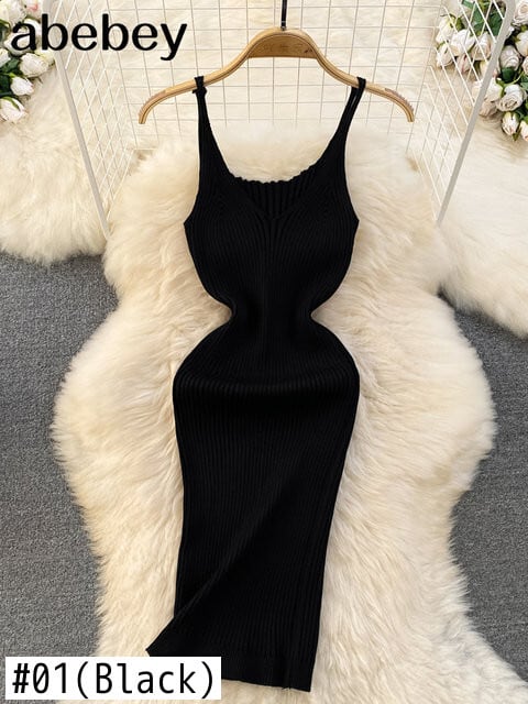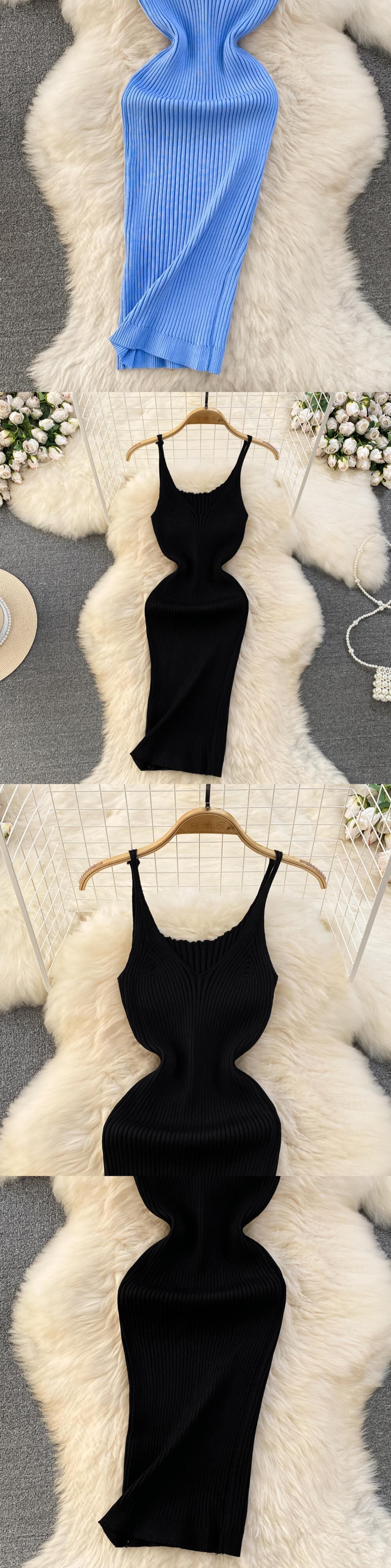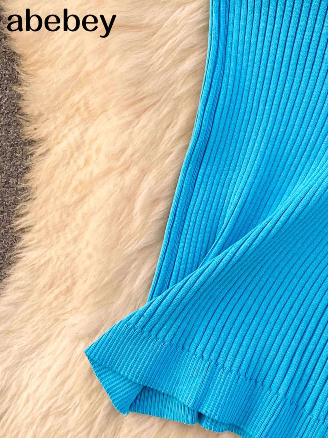 ブルーサマーニットセクシーストラップドレスタンク弾性ウエストボディコンサンドレスビーチバックレスミニドレス 夏物