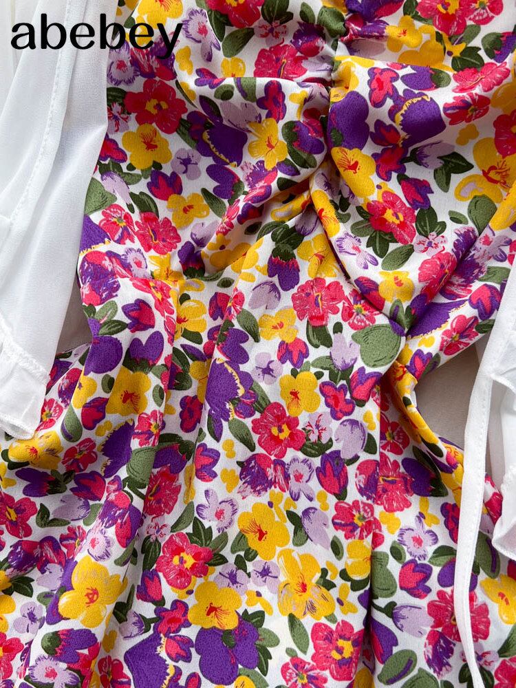花柄ツーピースドレス夏スリム休暇Aラインビーチミディロングドレス サマー 夏物