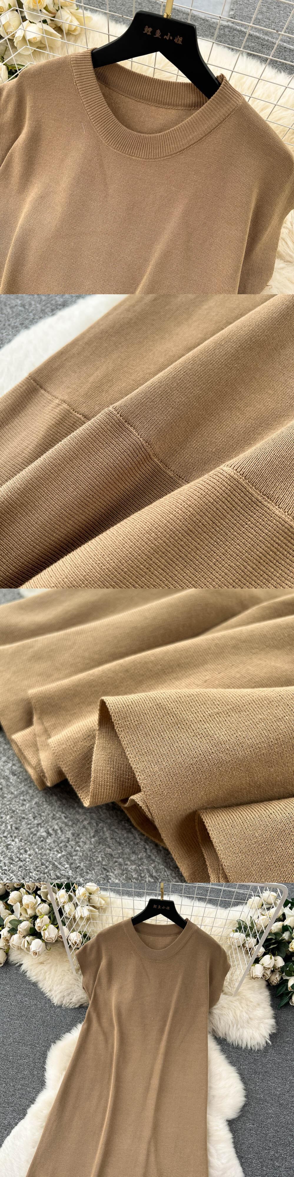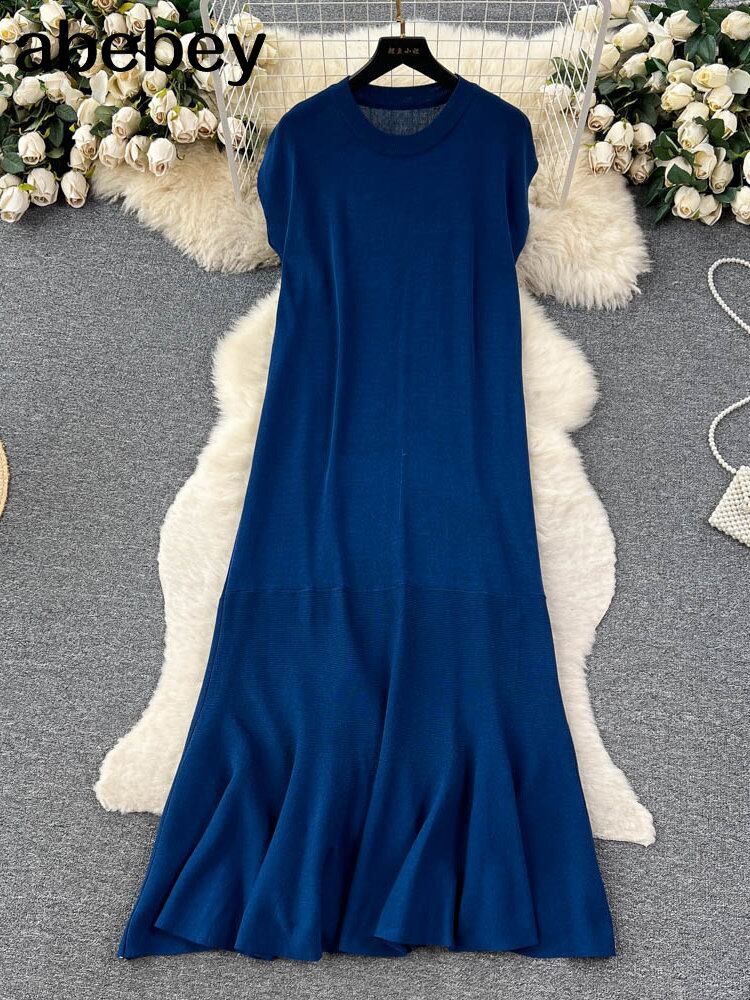 夏ニットボディコンロングドレス半袖スリム二枚ドレス休暇セクシービーチマキシサンドレス ショート ハーフスリーブ サマー 夏物