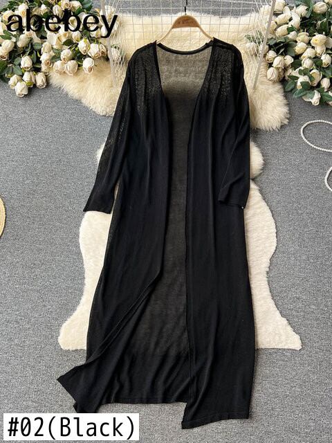 夏中空アウトルーズカーディガン長袖ニット薄手日焼け止めシャツ休暇レースアップビーチドレス ロング サマー 夏物