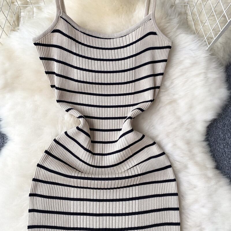 黄色サマーニットセクシーストラップドレスタンク弾性ウエストボディコンサンドレスビーチ背中開いたロングドレス 夏物