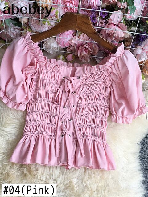 レッドガールズ半袖トップスセクシーショートクロップホリデーソリッドカラーブラウス ハーフスリーブ