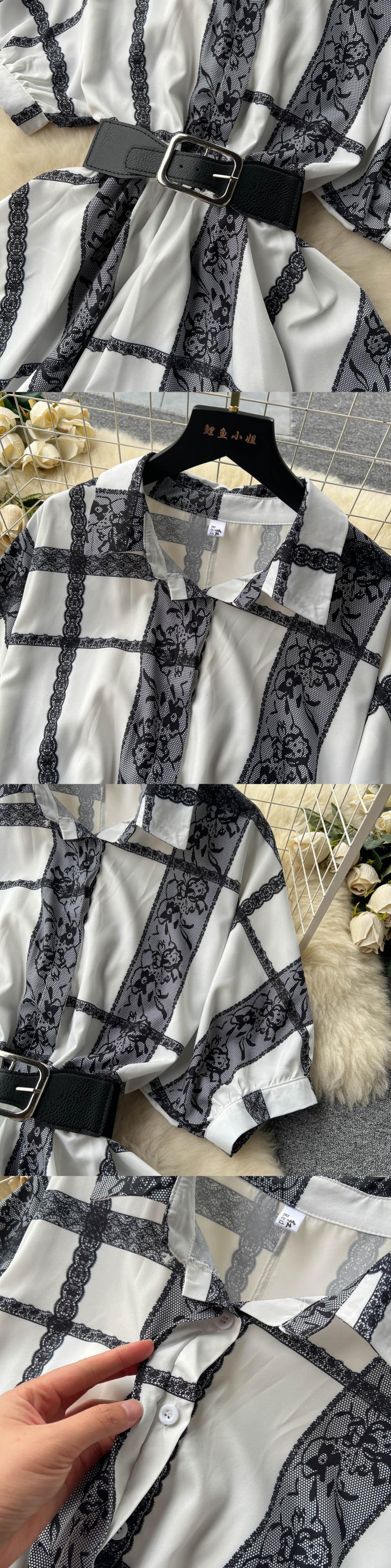 ルーズツーピーススーツ絵画カーディガン半袖シャツ+弾性ウエストワイドレッグパンツセット ショート ハーフスリーブ エラスティック 伸縮 ワイドパンツ