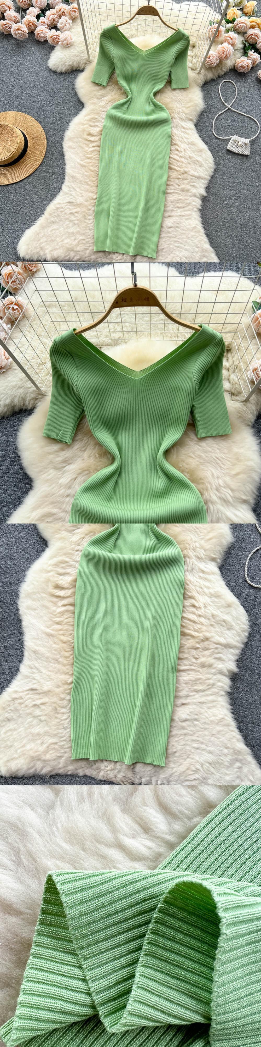 ニットボディコンセータードレス夏半袖ニットプルオーバー膝丈パーティードレス ショート ハーフスリーブ サマー 夏物
