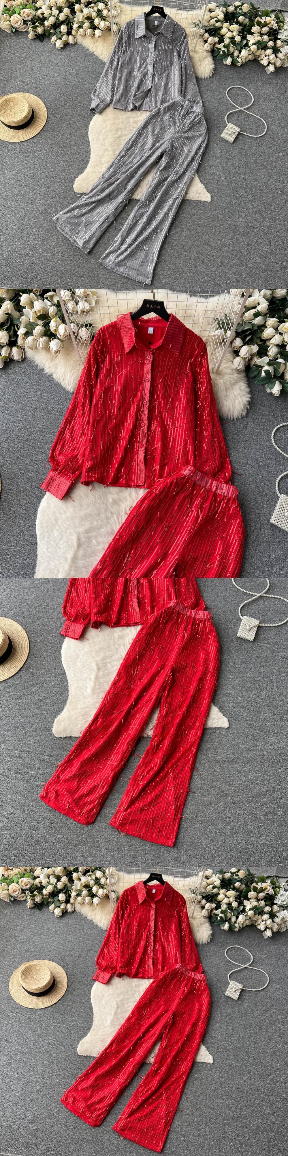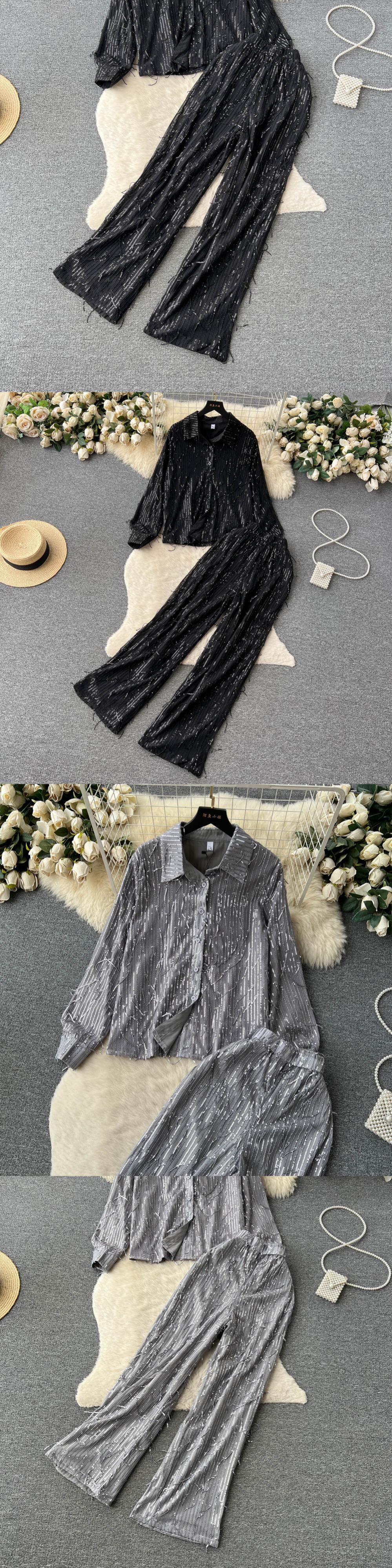 ジャージ シャツと長ズボン 3 枚セット スパンコール ビーズ衣装ブラウス ロング