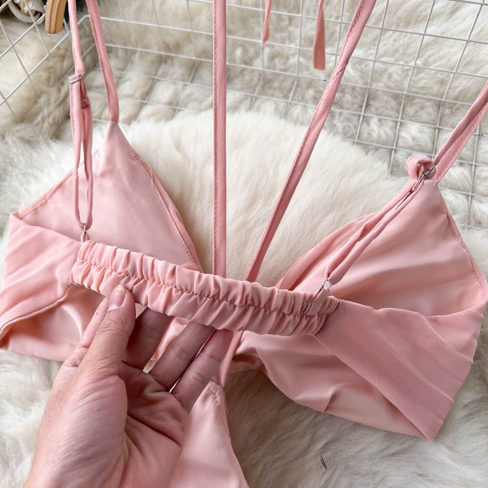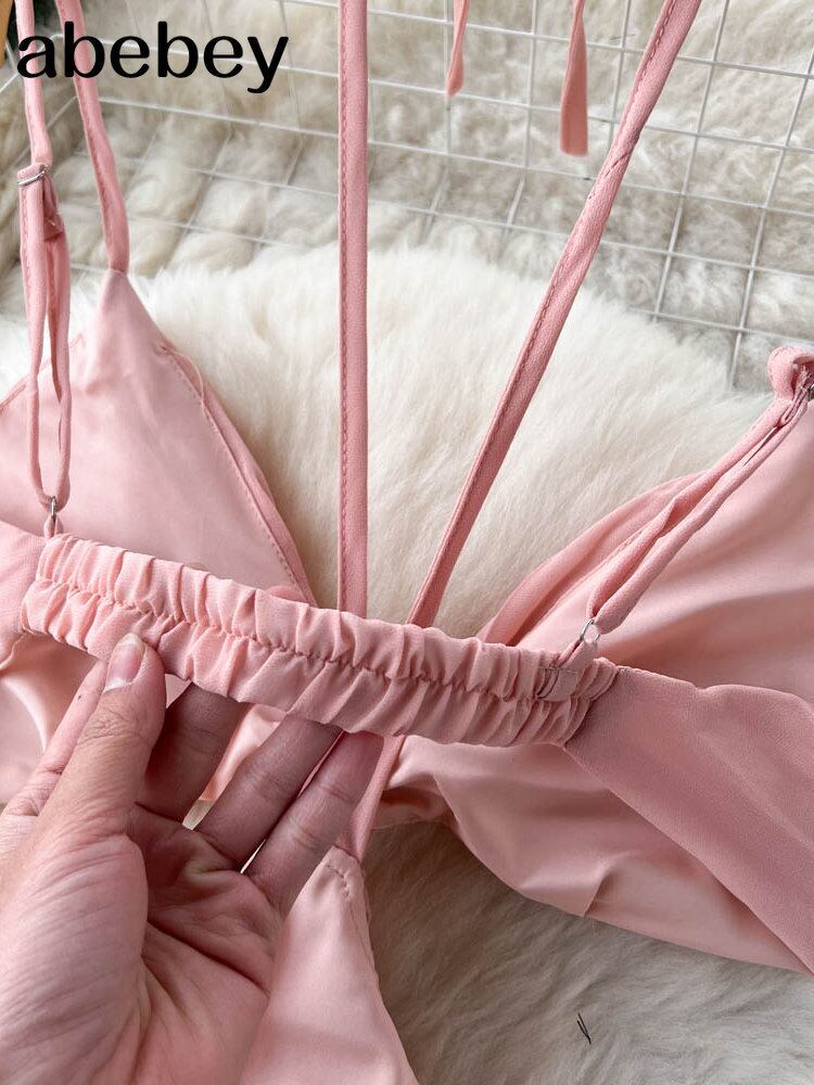セクシーロングシフォンサンドレススパゲッティストラップレースアップホルター弾性バックレスプリーツソリッドサマービーチドレス。 エラスティック 伸縮 夏物 ソリッドカラー