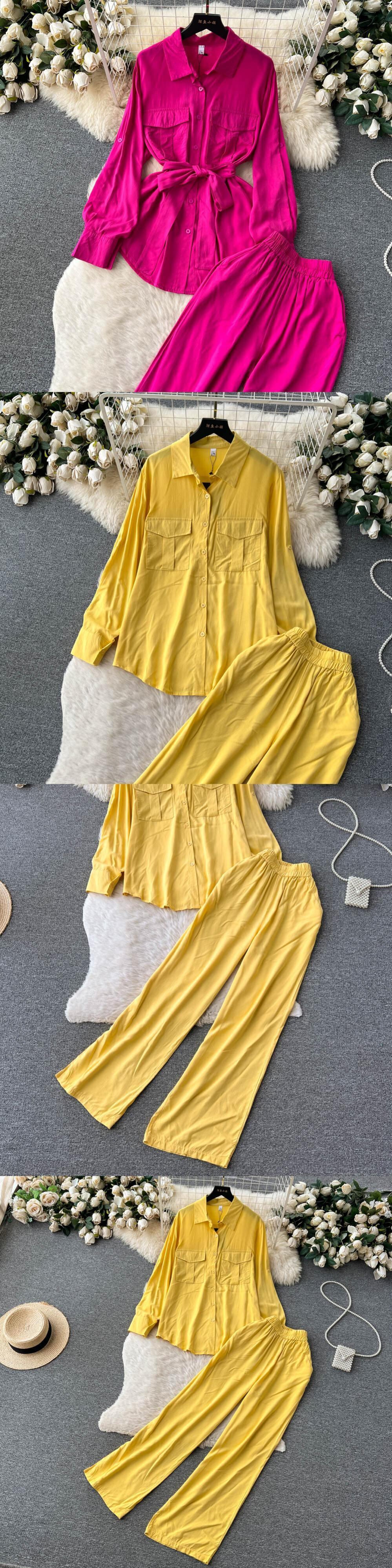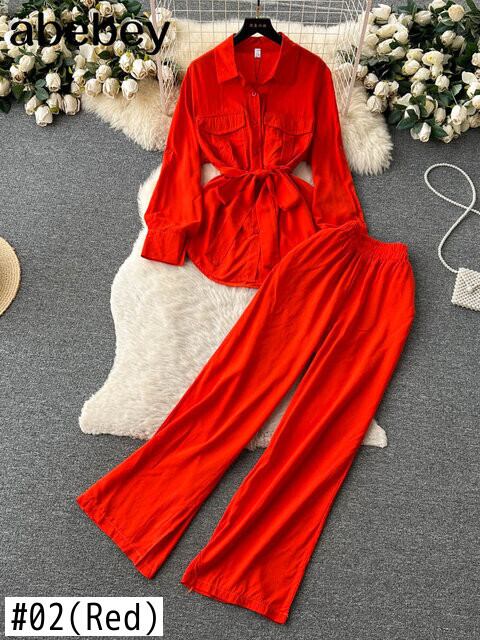 ビーズストリート レディース セット 長袖シャツ トップスとワイドレッグパンツ トラックスーツ 2 点セット スウェットスーツ フィットネス 服装 ロング ワイドパンツ