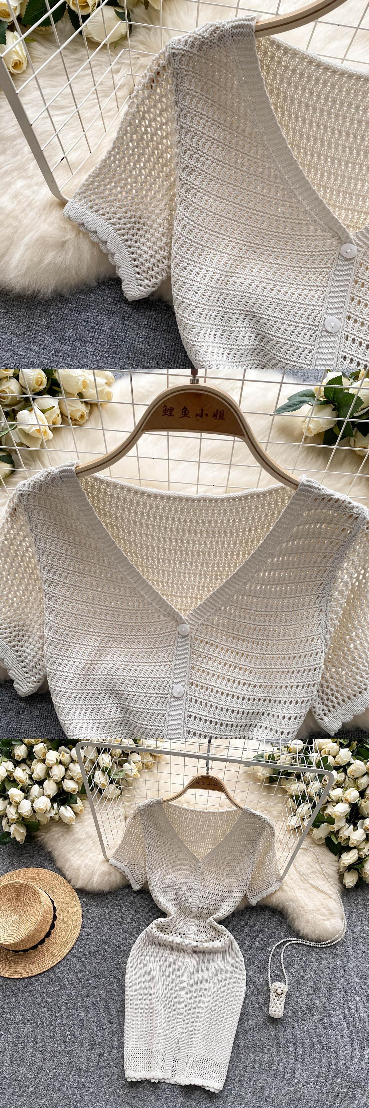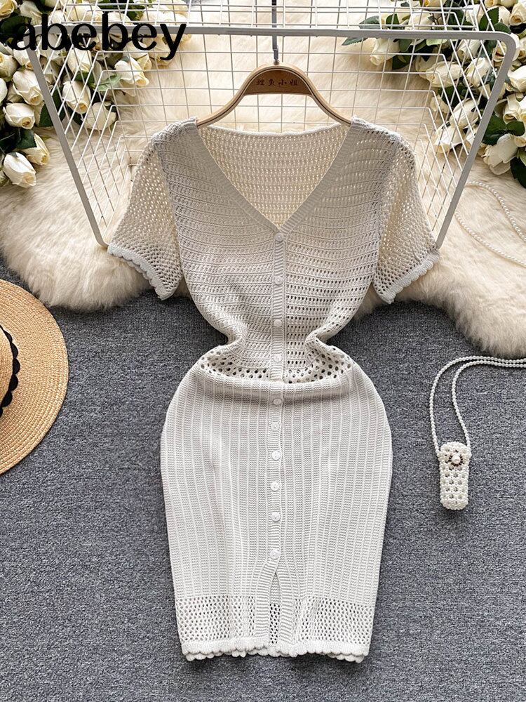 かぎ針編みドレス ニットカットアウトドレス Jurk Dames ビーチドレス 半袖 Vestidos ショートドレス ハーフスリーブ