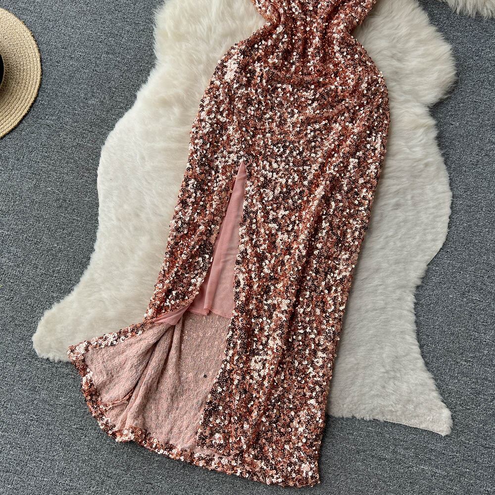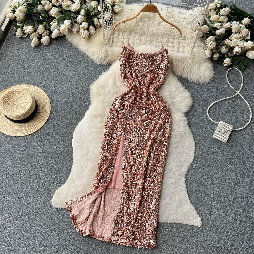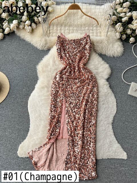 セクシー v ネックスパンコールロングドレス夏黒スパゲッティストラップスプリットドレススリムソリッドパーティーvestido ブラック サマー 夏物 Vネック ソリッドカラー
