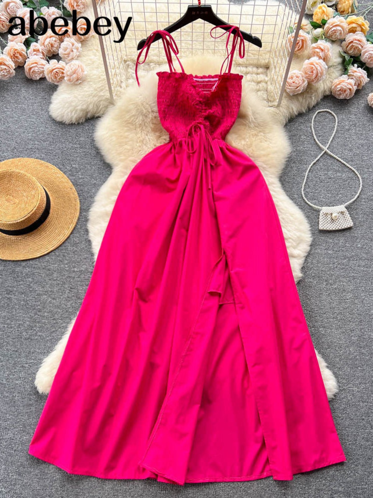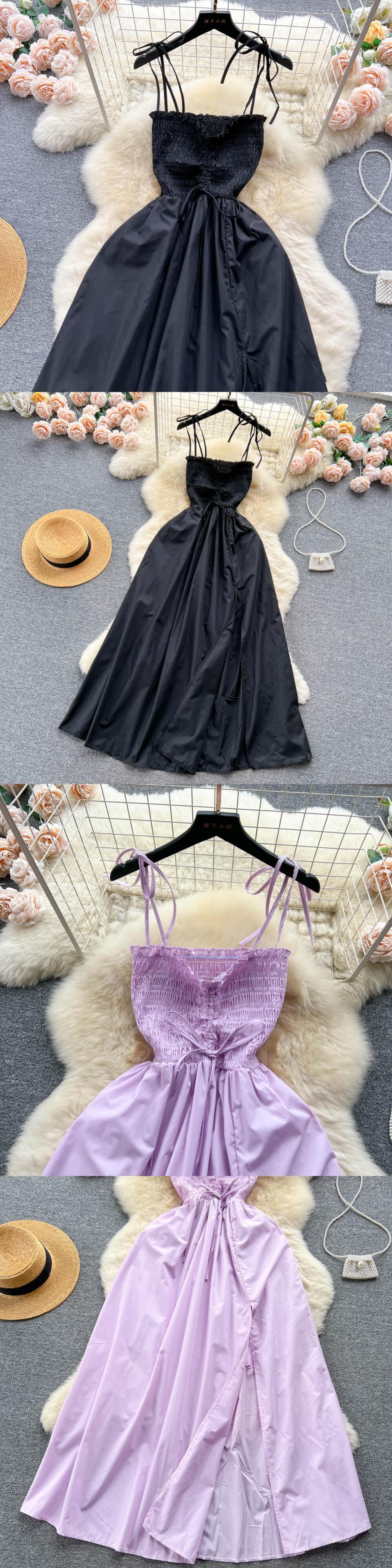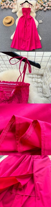 フリルセクシーストラップドレス夏シャーリング弾性 A ラインシフォンドレスストリート背中開いたビーチロングドレス ラッフル エラスティック 伸縮 サマー 夏物 Aライン