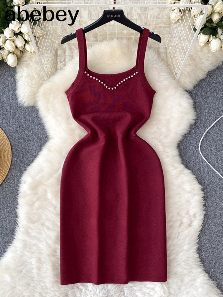 V ネックソリッドニットドレスすべて一致シンプルドレス Vestidos 服 ソリッドカラー