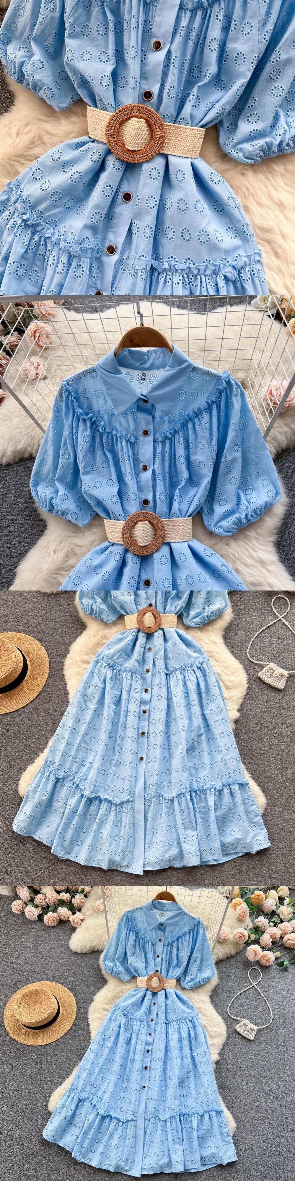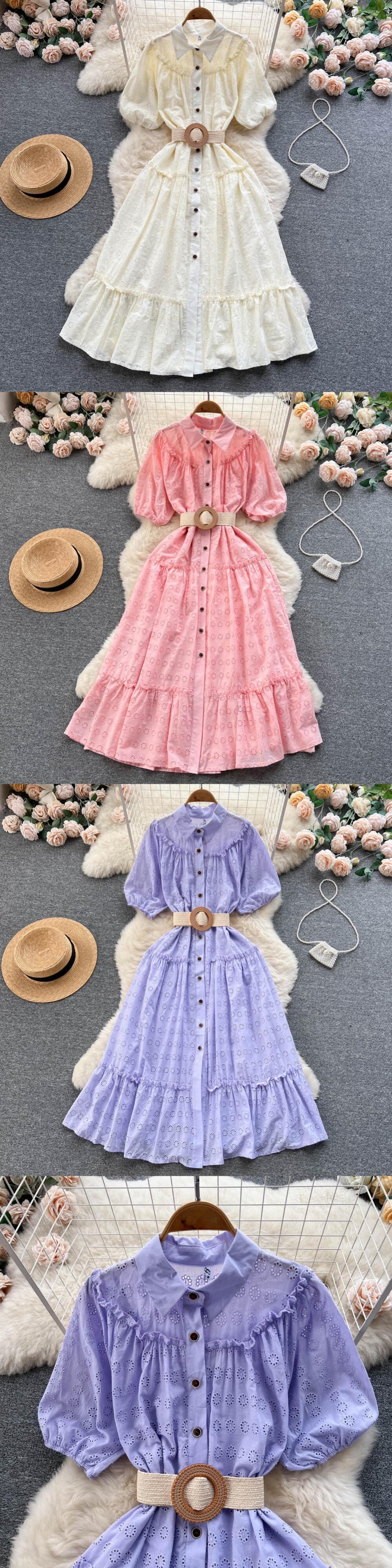 ホワイト/グリーン/レッドサマーレース刺繍ドレス半袖ドレスパーティービーチマキシロングドレス ショート ハーフスリーブ 夏物