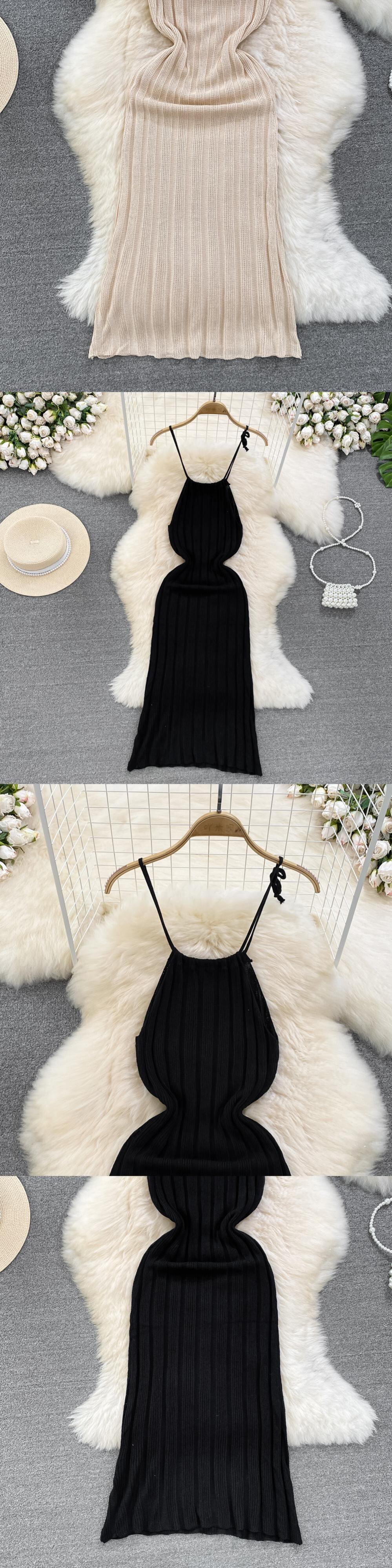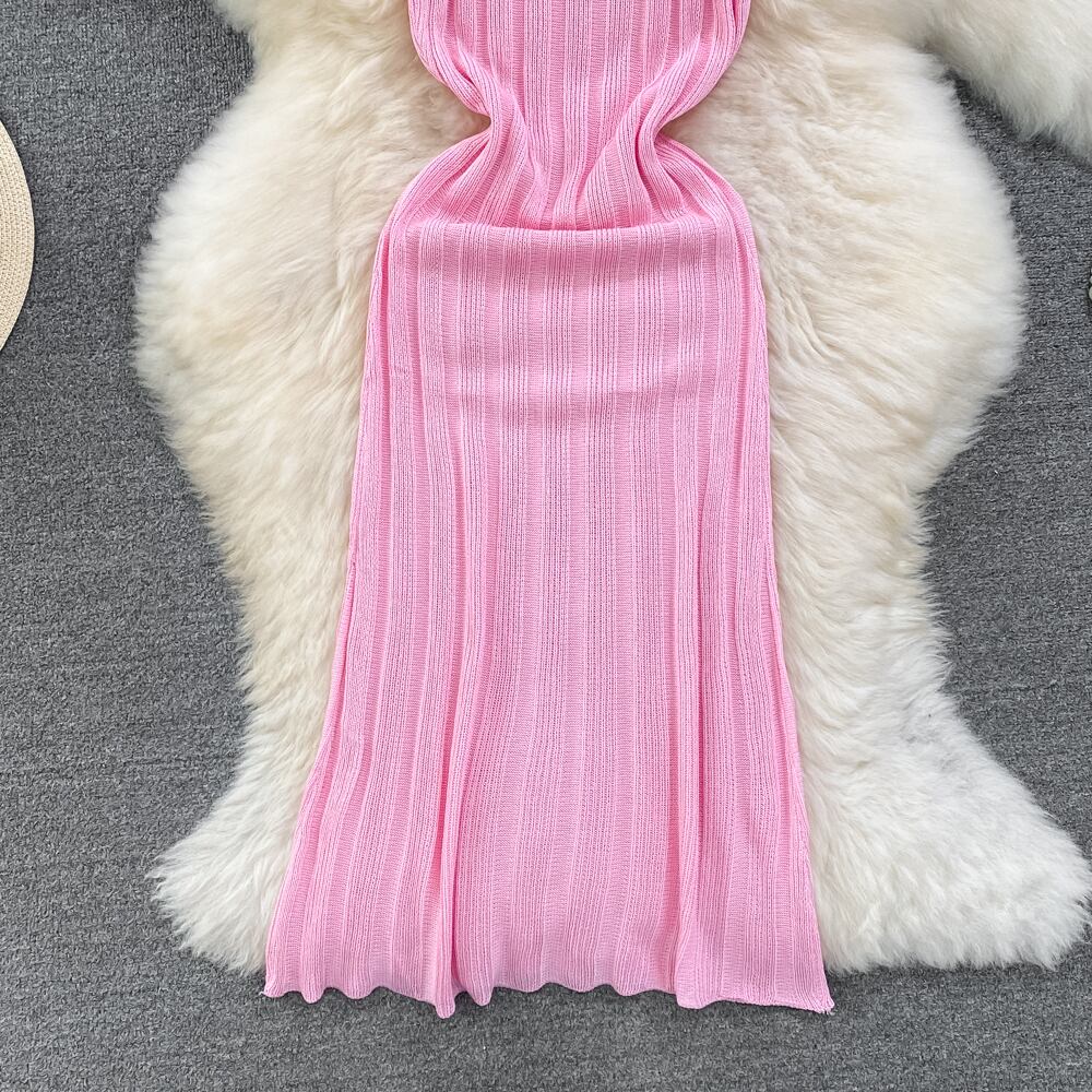 ピンクホルター夏 V ネックニットセクシーストラップドレスタンク弾性ウエストボディコンサンドレスビーチ背中開いたマキシロングドレス サマー 夏物 Vネック